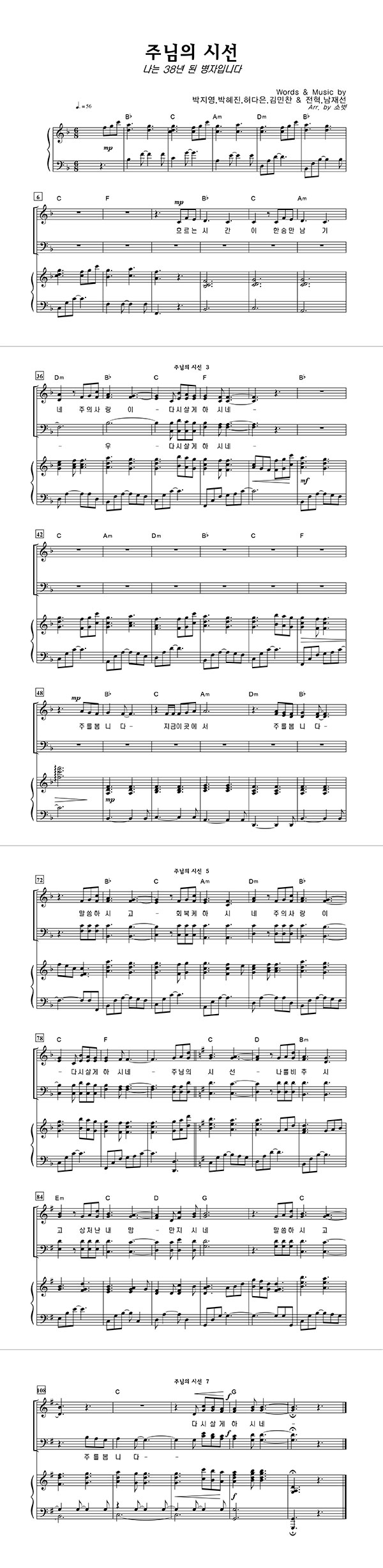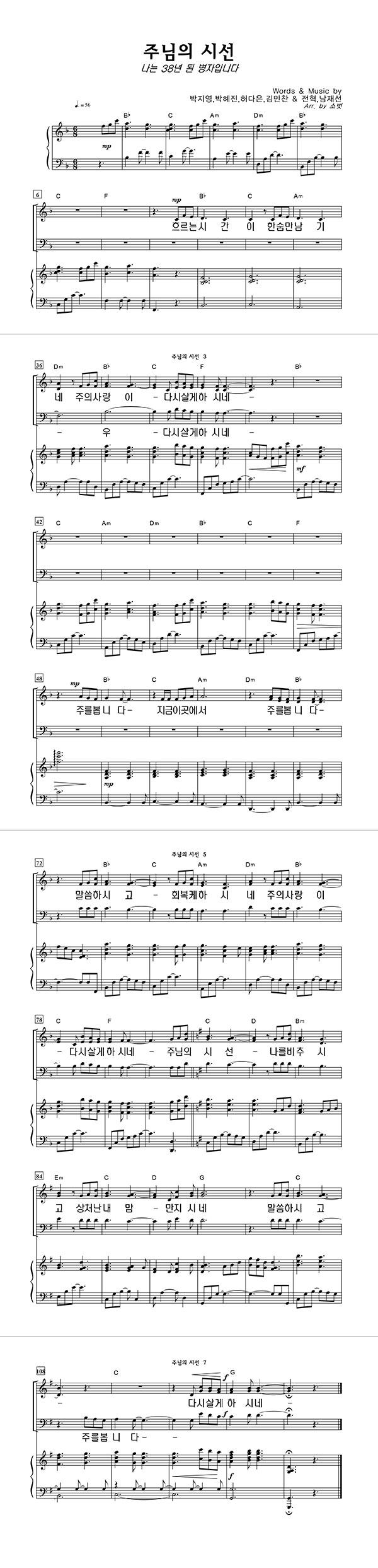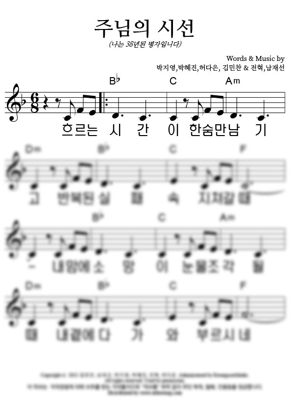 '주님의 시선 (부제 : 나는 38년 된 병자입니다) Wait On You' 의 다른 악보형식