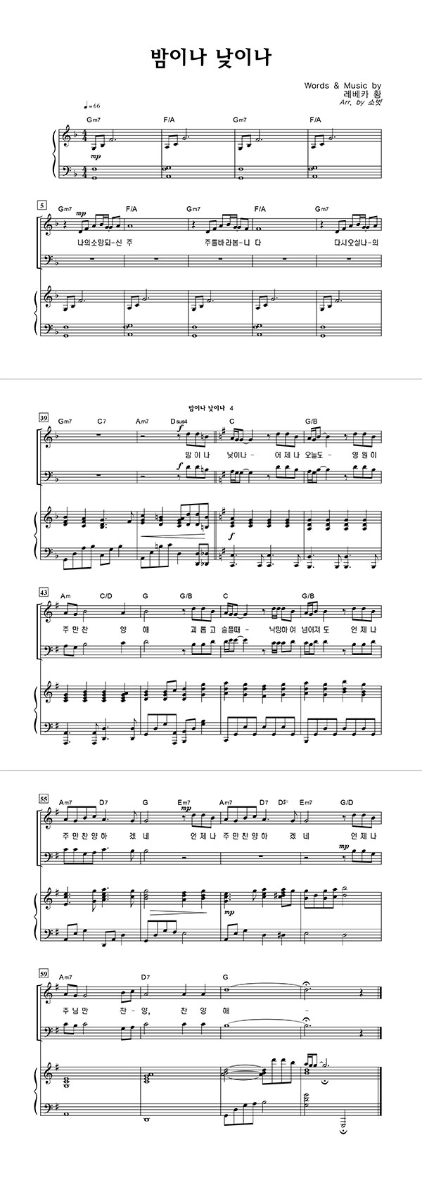| 밤이나 낮이나 | 성가 3부 + 피아노 반주 |