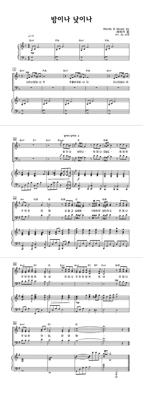 | 밤이나 낮이나 큰글씨 | 성가 4부 + 피아노 반주 |