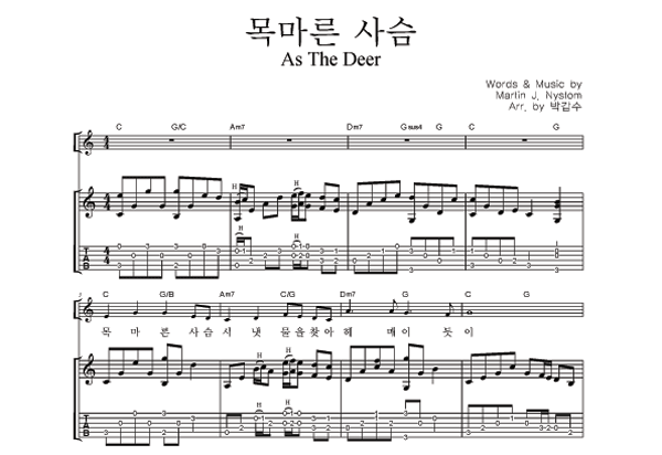 '목마른 사슴' 의 다른 악보형식