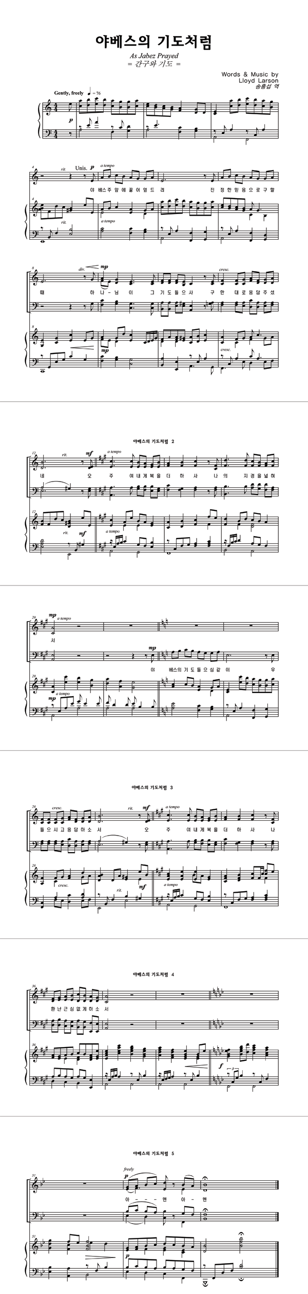 성가 4부 + 피아노 반주 | Lloyd Larson | Lloyd Larson | 송흥섭 |