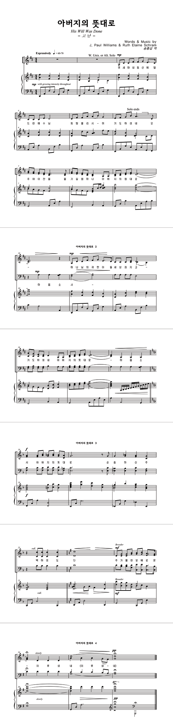 성가 4부 + 피아노 반주 | J. Paul Williams | Ruth Elaine Schram | 송흥섭 |