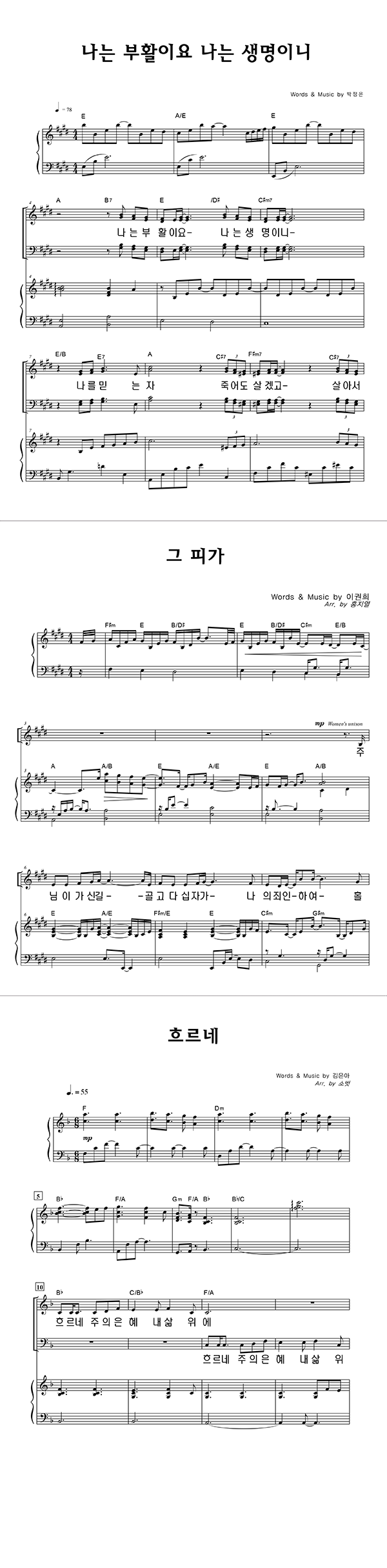 성가 3부 + 피아노 반주 | 장진숙 | 장진숙 | 강신혜 |