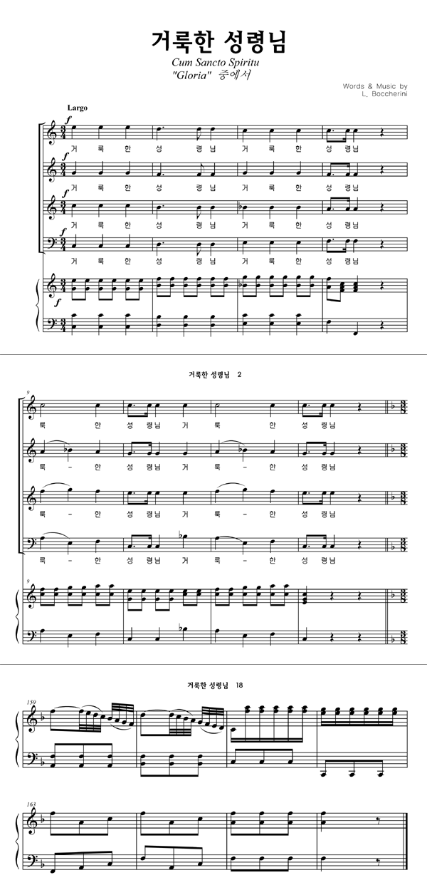성가 4부 + 피아노 반주 | L. Boccherini | L. Boccherini |