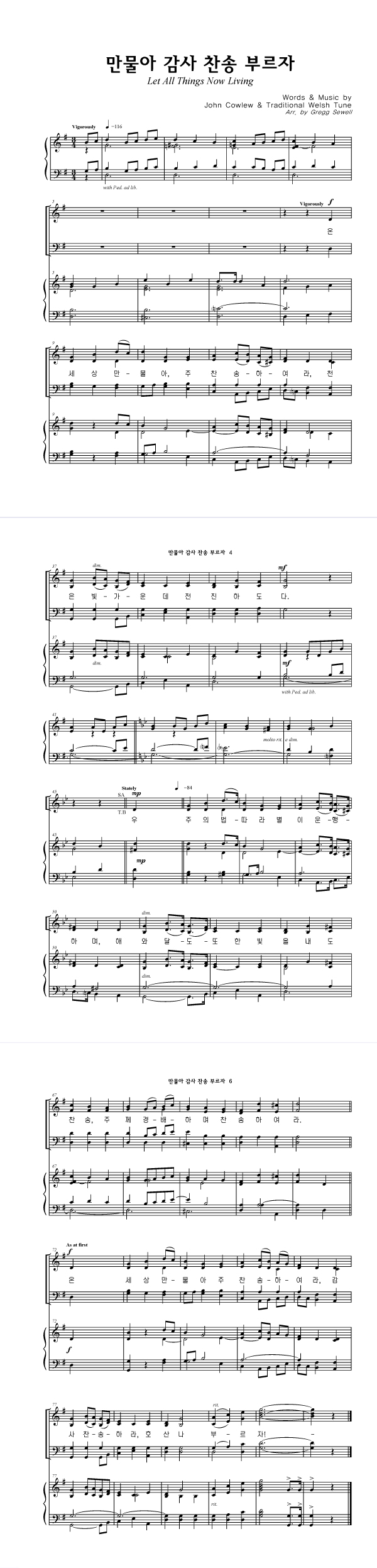 성가 4부 + 피아노 반주 | John Cowlew | Traditional Welsh Tune | Gregg Sewell |