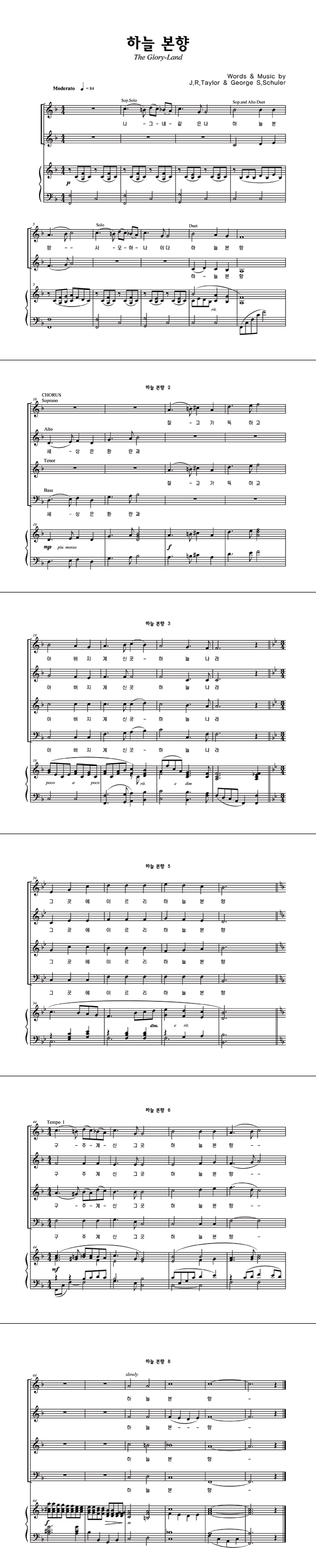 성가 4부 + 피아노 반주 | J.R.Taylor | George S.Schuler |