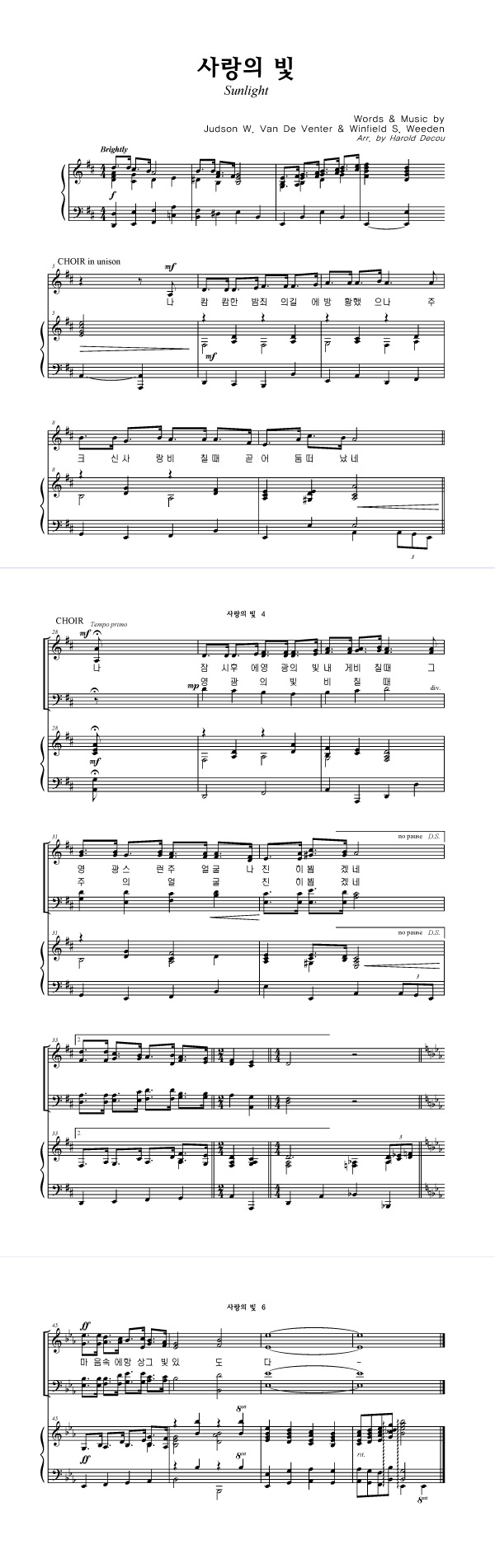 성가 4부 + 피아노 반주 | Judson W. Van De Venter | Winfield S. Weeden | Harold DeCou |
