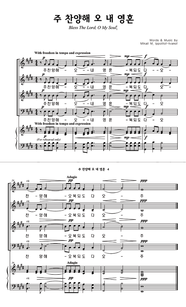 성가 4부 + 피아노 반주 | Mikail M. Ippolitof-Ivanof | Mikail M. Ippolitof-Ivanof |
