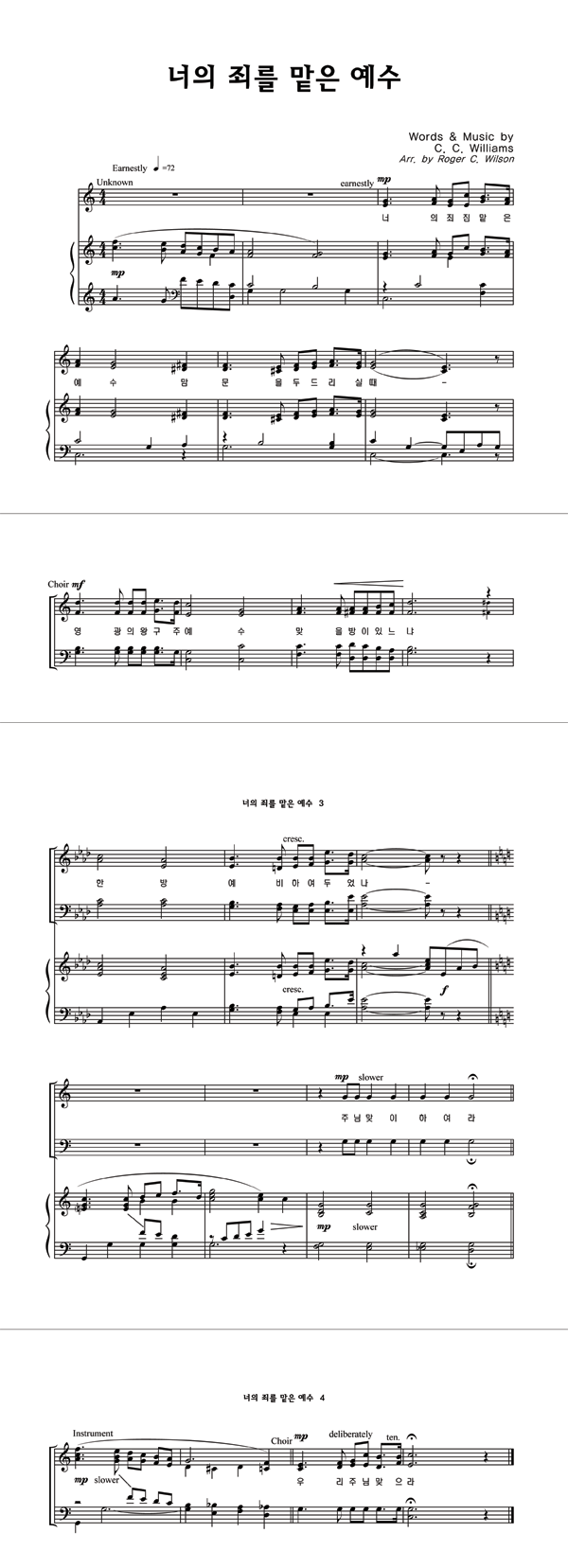 성가 4부 + 피아노 반주 | C. C. Williams | C. C. Williams | Roger C. Wilson |