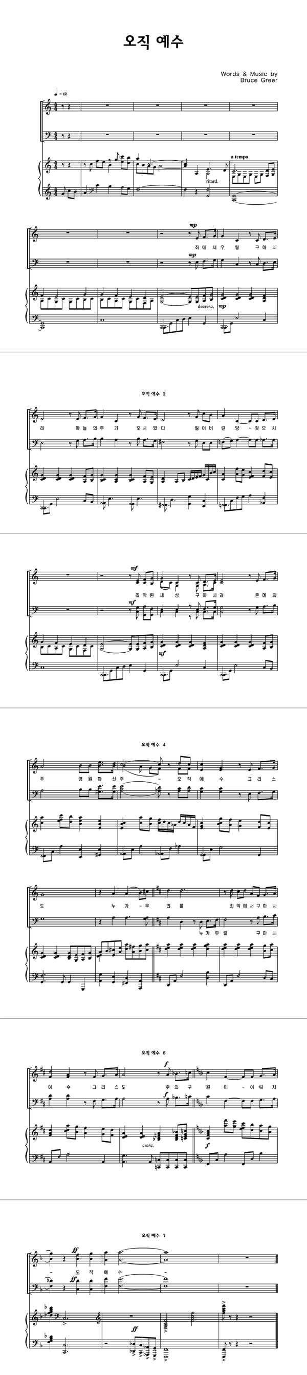 성가 4부 + 피아노 반주 | Bruce Greer | Bruce Greer |