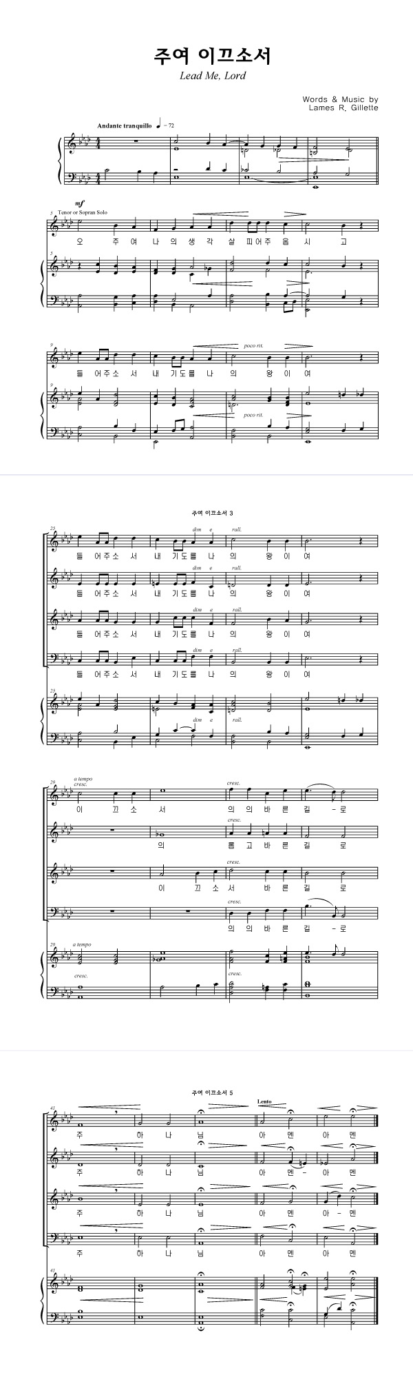 성가 4부 + 피아노 반주 | Lames R. Gillette | Lames R. Gillette |