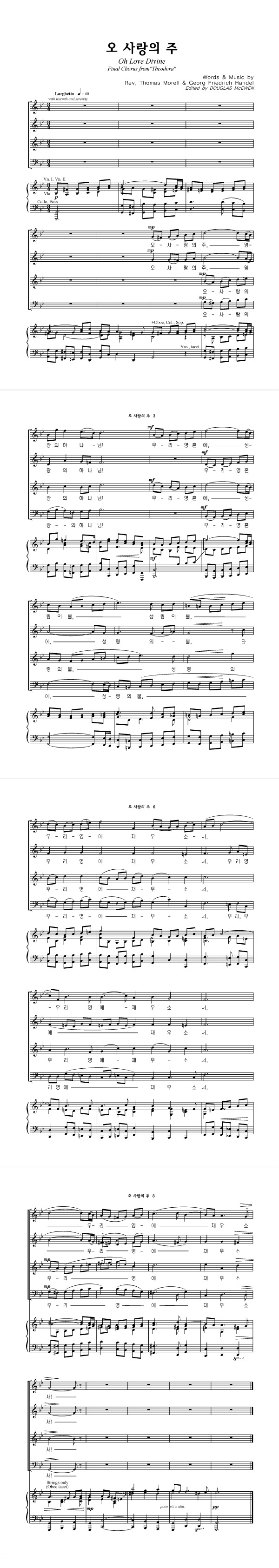 성가 4부 + 피아노 반주 | Rev. Thomas Morell | G. F. Handel | DOUGLAS McEWEN |