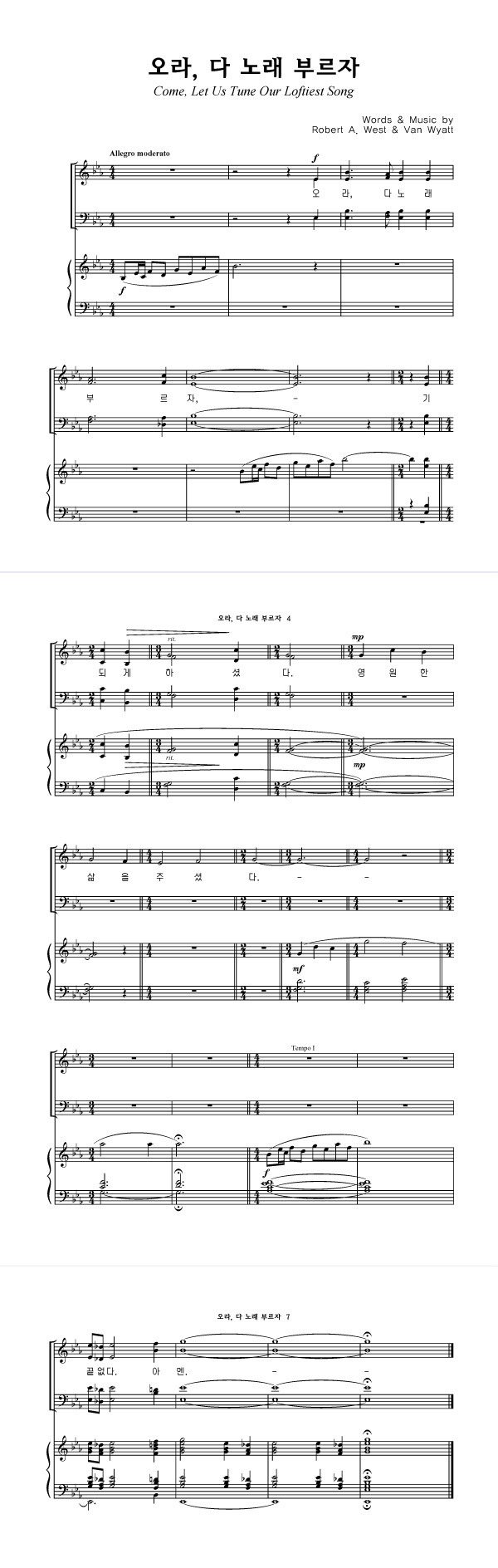 성가 4부 + 피아노 반주 | Robert A. West | Van Wyatt |
