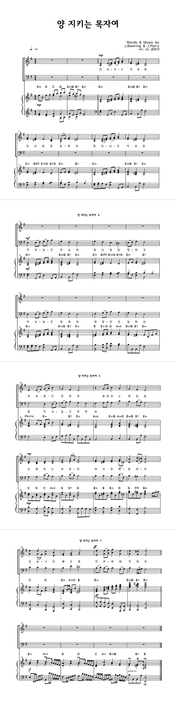 성가 3부 + 피아노 반주 | J. Bowring | J. Parry | 정유리 |