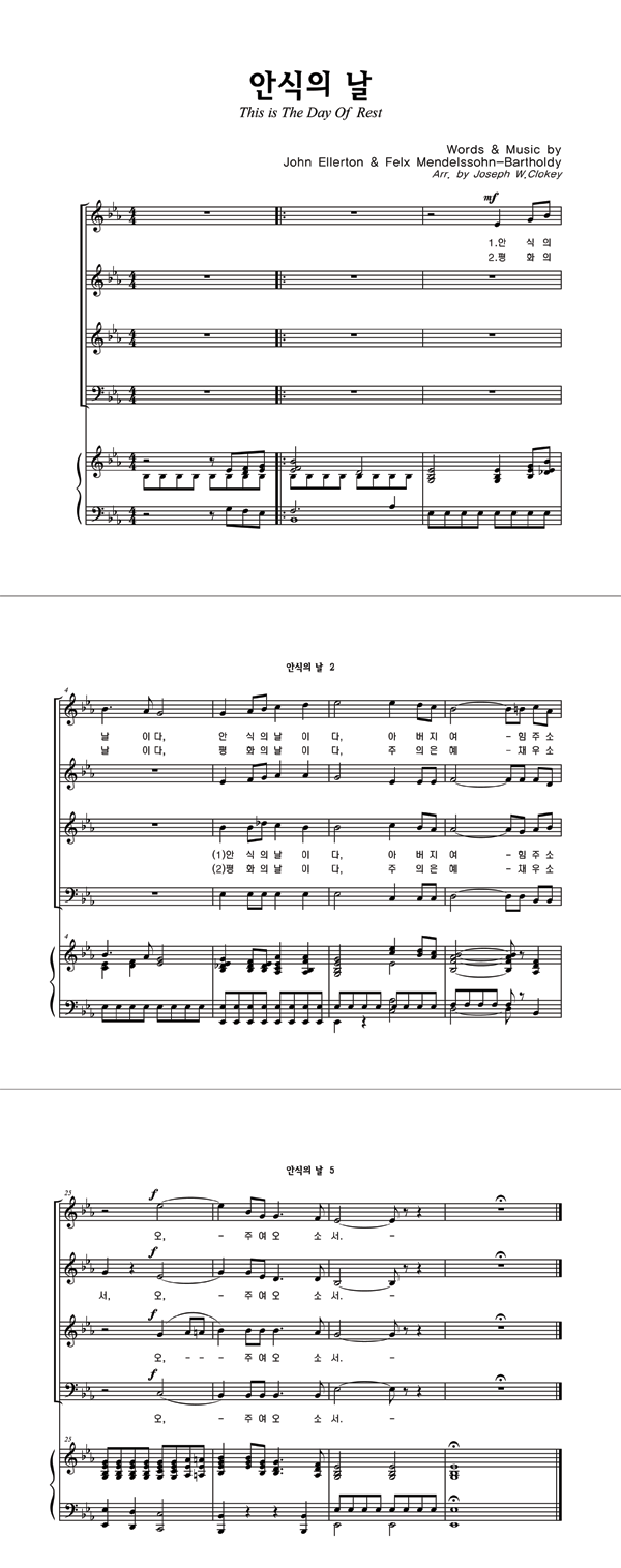 성가 4부 + 피아노 반주 | John Ellerton | F. Mendelssohn | Joseph W.Clokey |