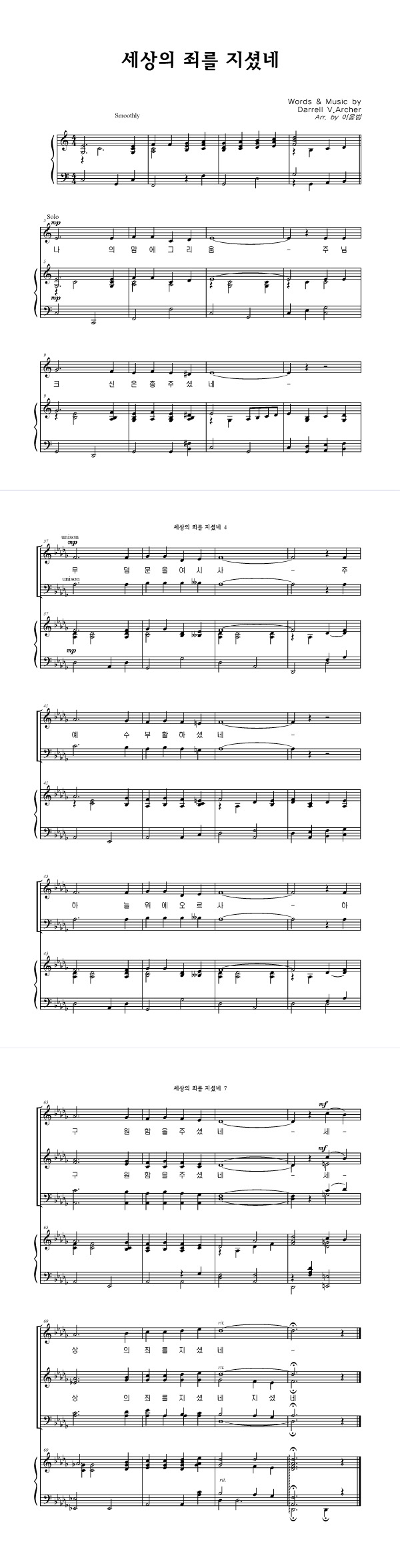 성가 4부 + 피아노 반주 | Darrell V.Archer | Darrell V.Archer | 이용범 |