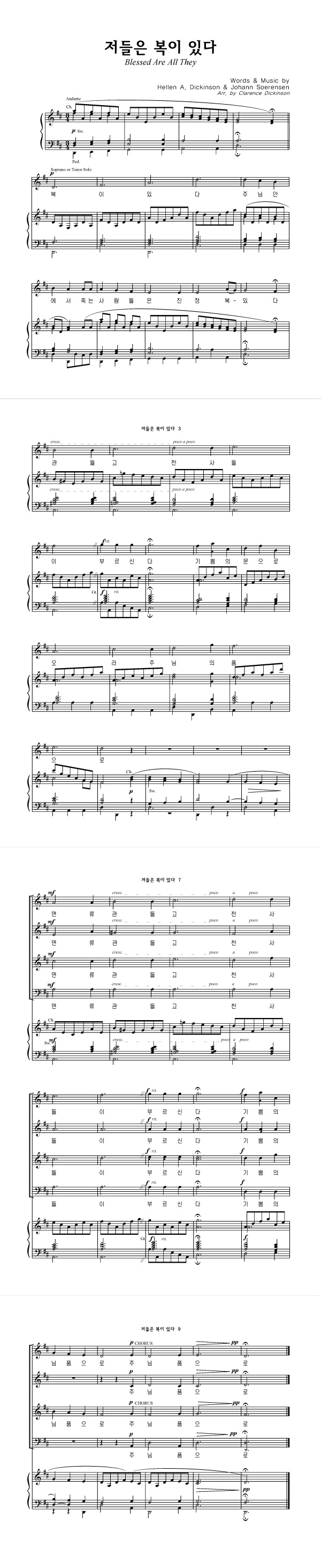 성가 4부 + 피아노 반주 | Hellen A. Dickinson | Johann Soerensen | Clarence Dickinson |
