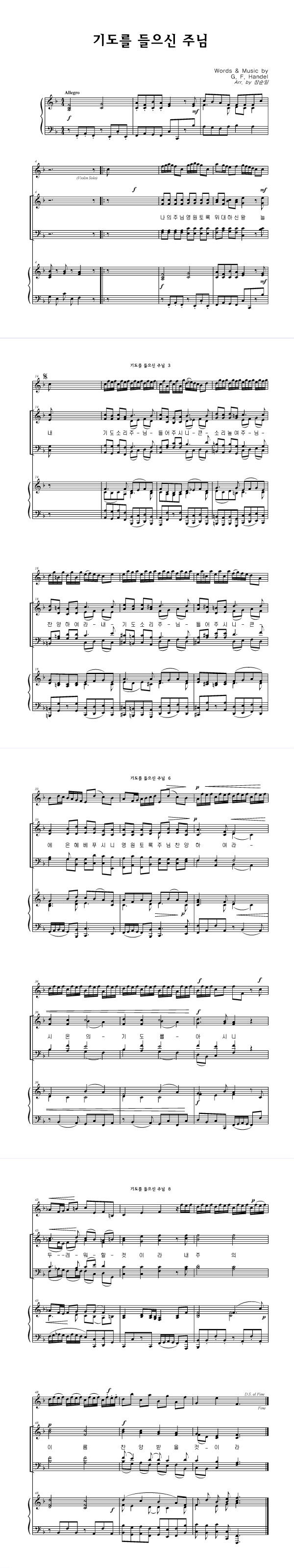성가 4부 + 피아노 반주 | G. F. Handel | G. F. Handel | 장순일 |