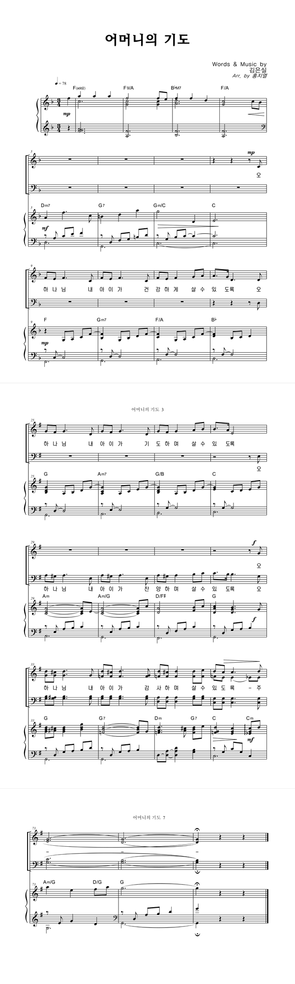 성가 4부 + 피아노 반주 | 김은실 | 김은실 | 홍지열 |