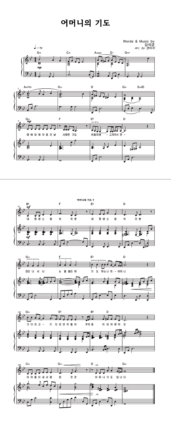 성가 2부 + 피아노 반주 | 손경민 | 손경민 | 소벗 |