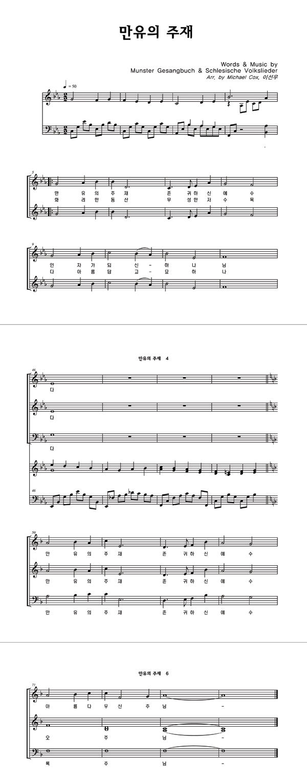 '만유의 주재' 의 악보