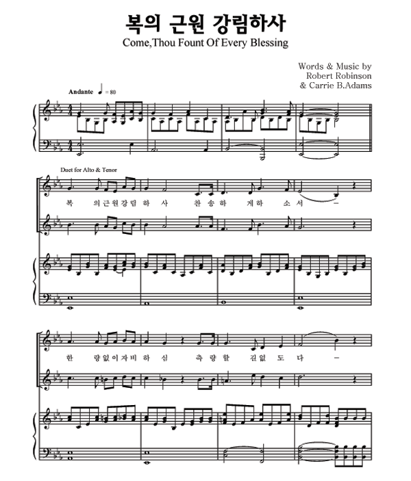 '복의 근원 강림하사 (찬송가 28장)' 의 악보