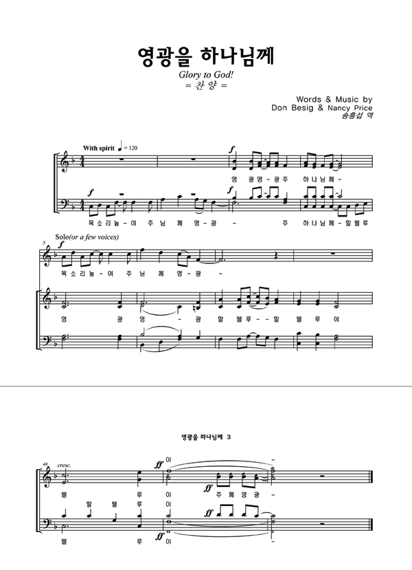 '영광을 하나님께' 의 악보