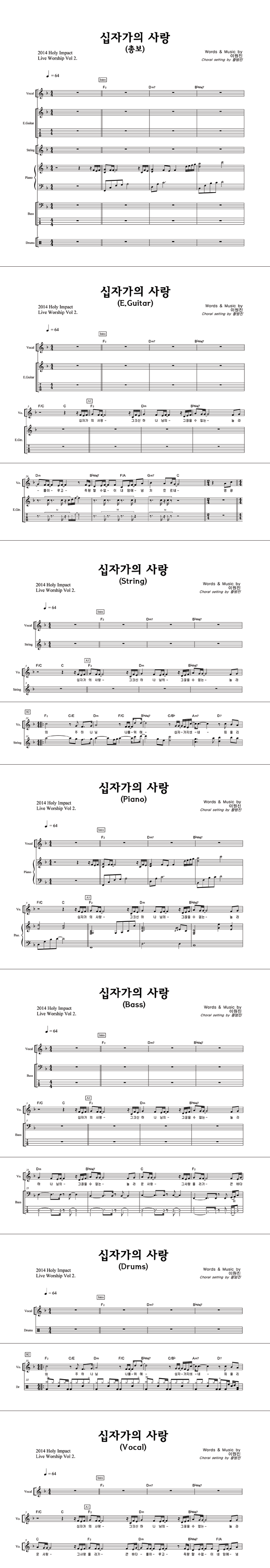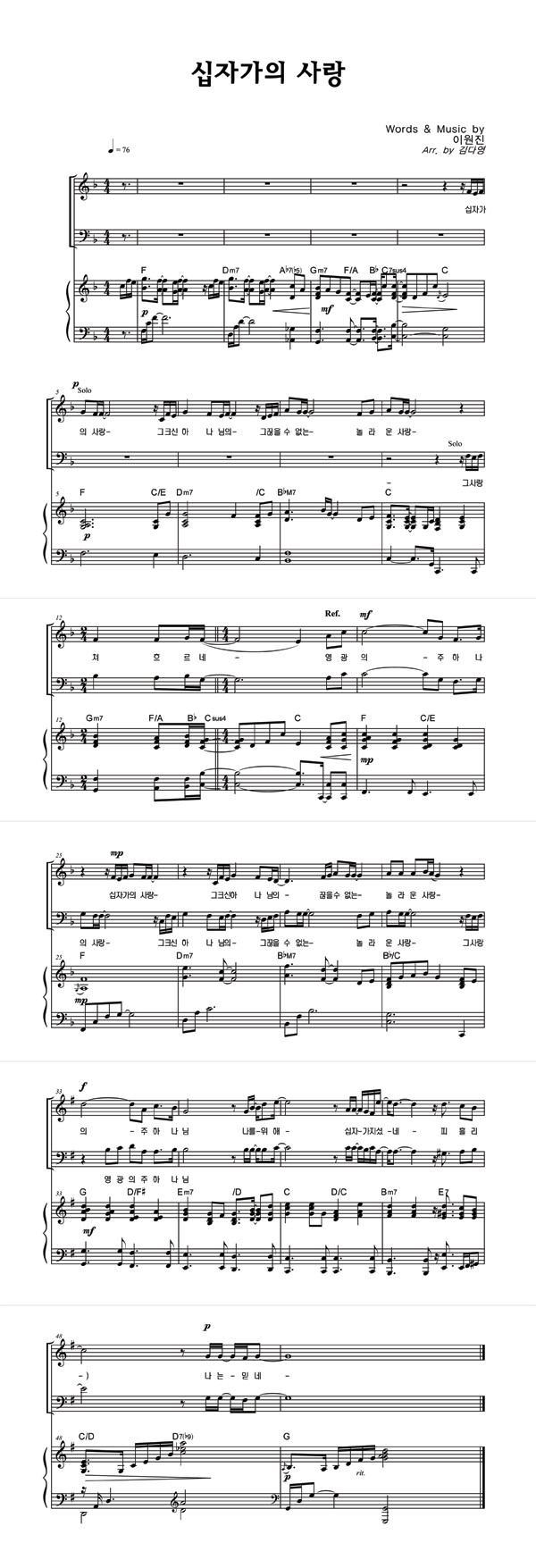 '십자가의 사랑' 의 악보