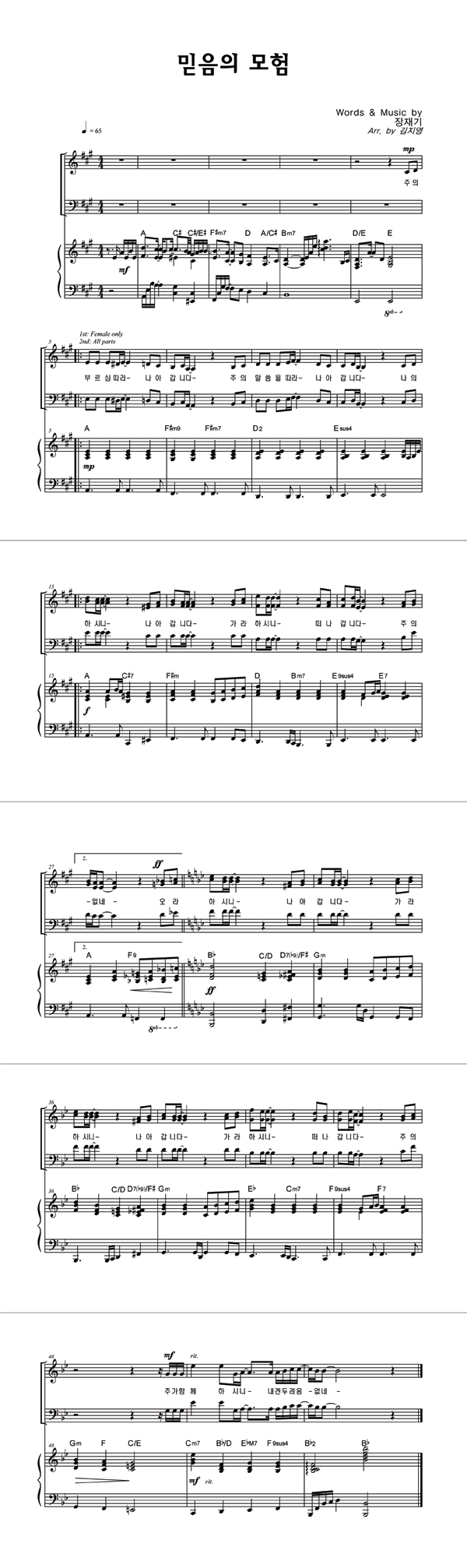 '믿음의 모험' 의 악보