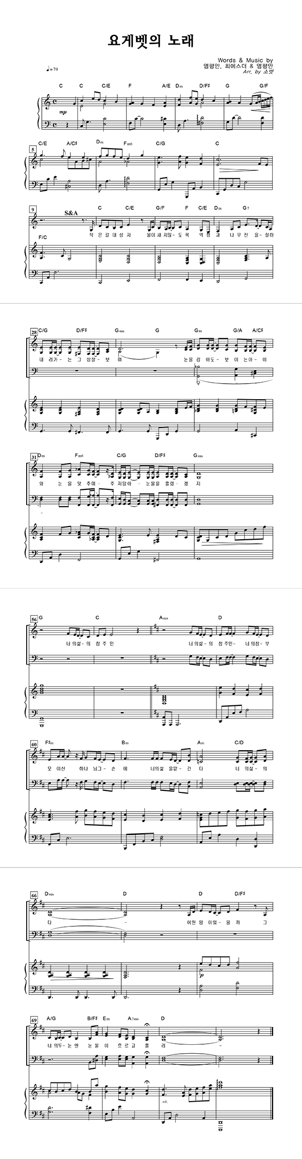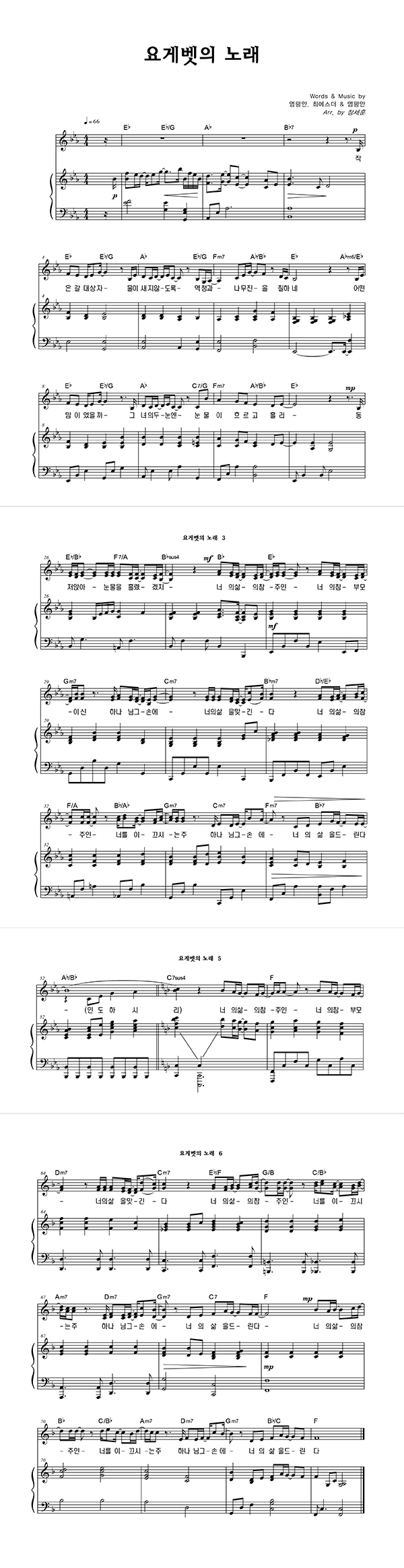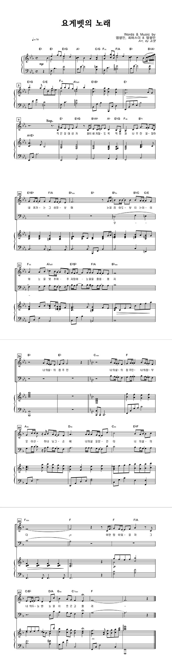 '요게벳의 노래' 의 악보