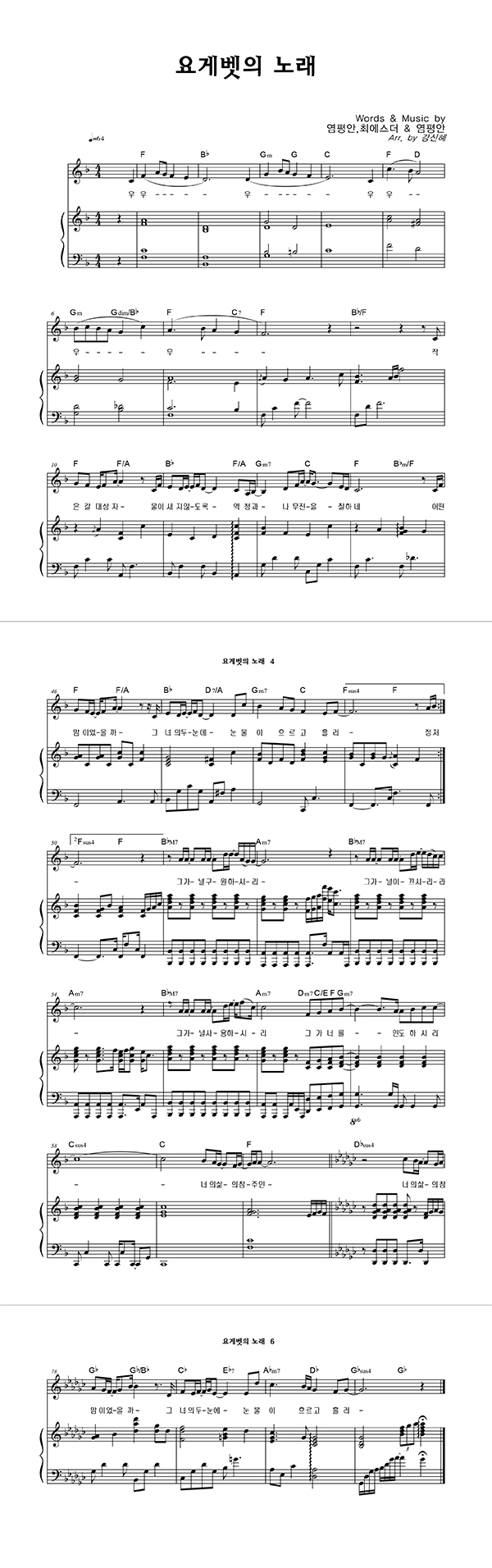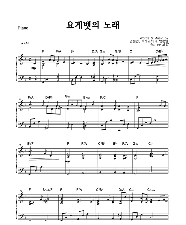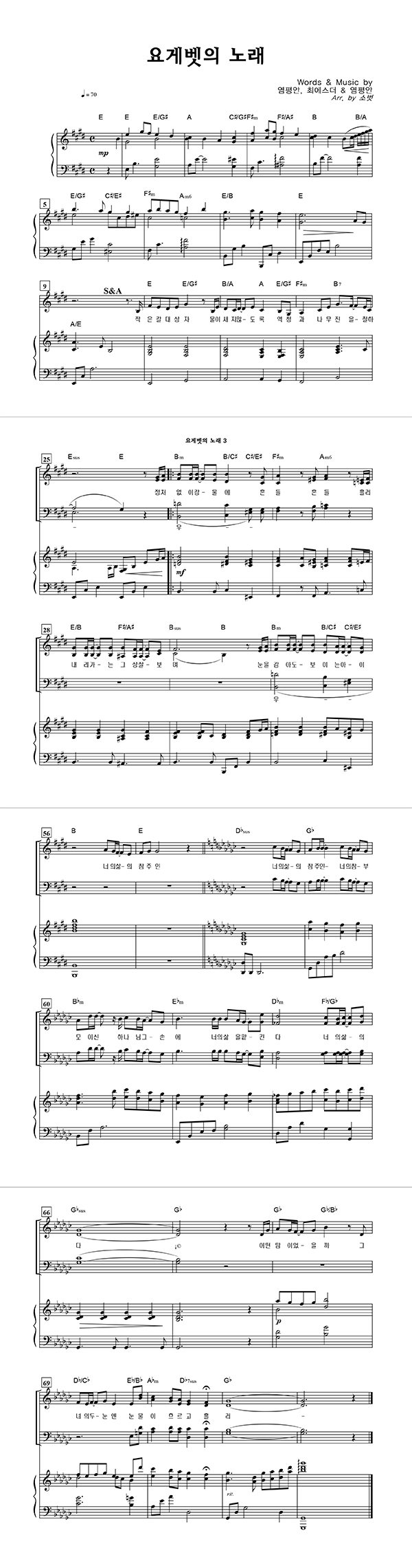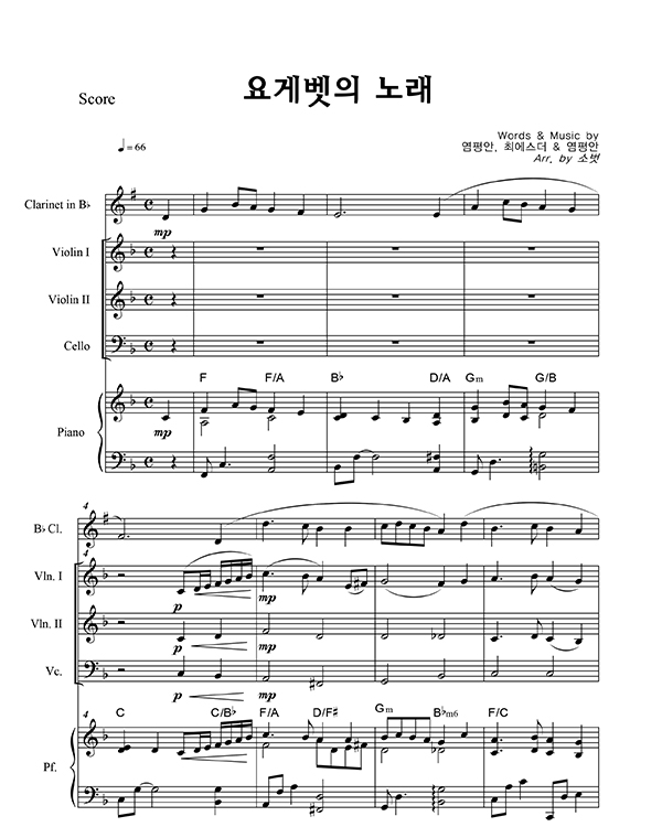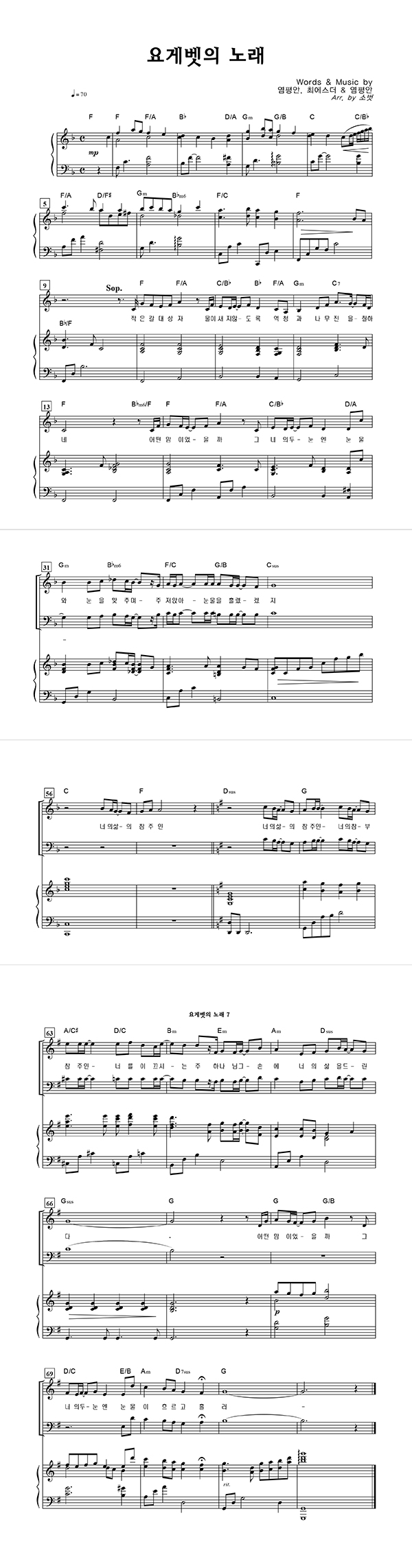 '요게벳의 노래' 의 악보
