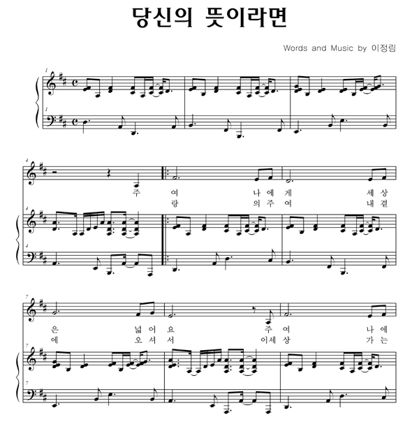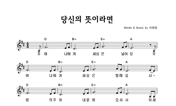 당신의 뜻이라면 (작사,곡: 이정림) .