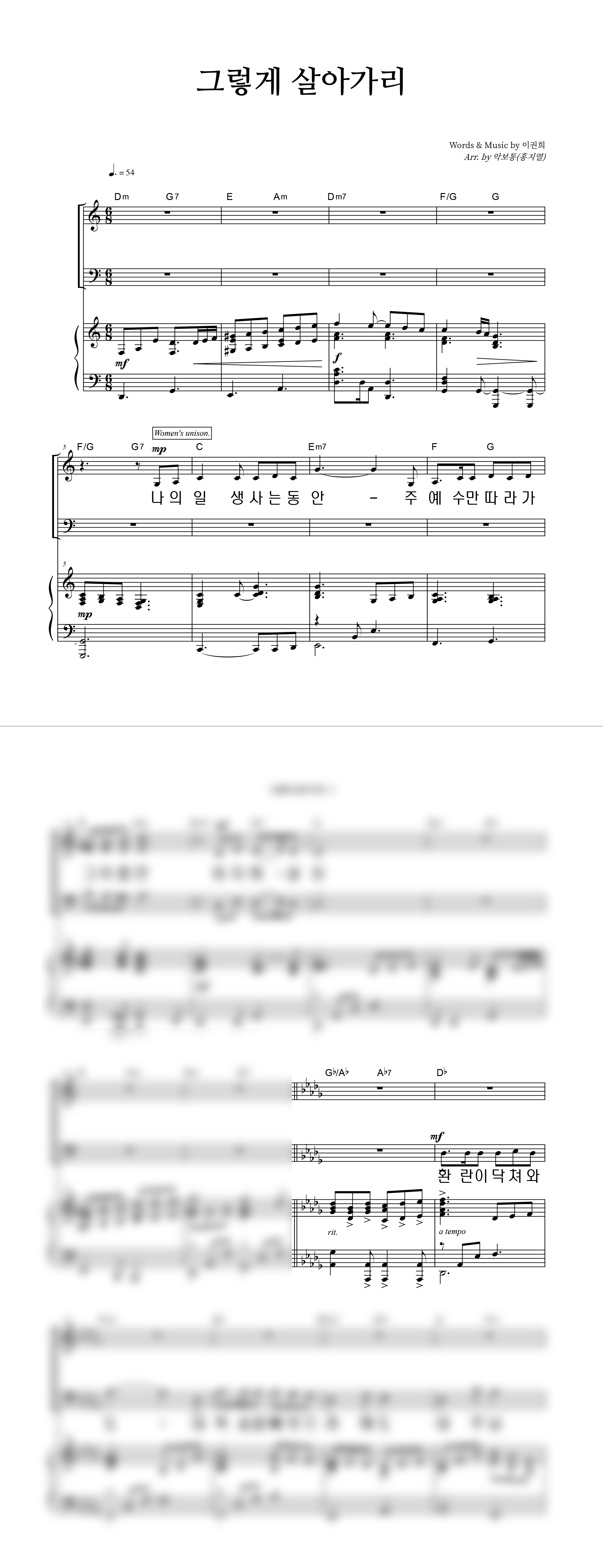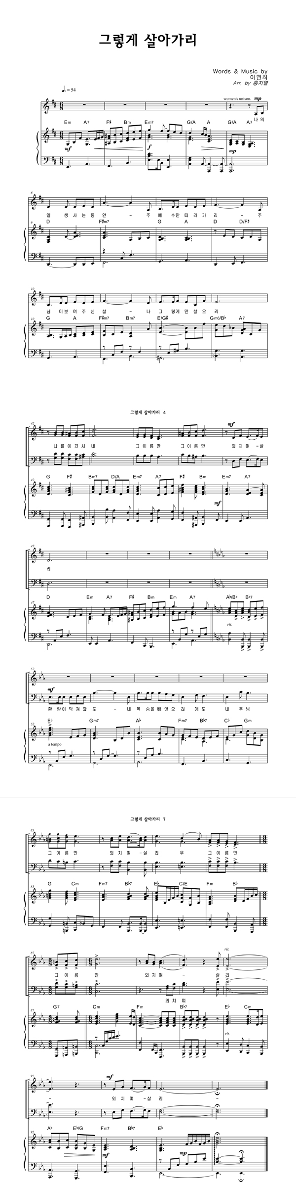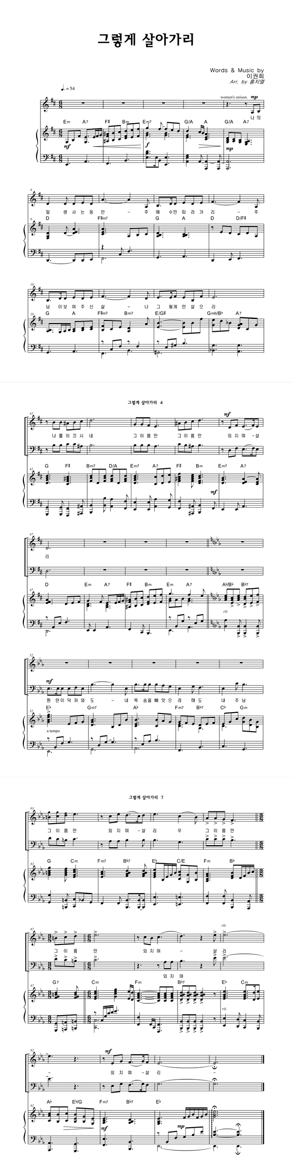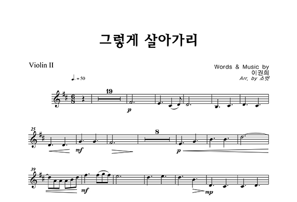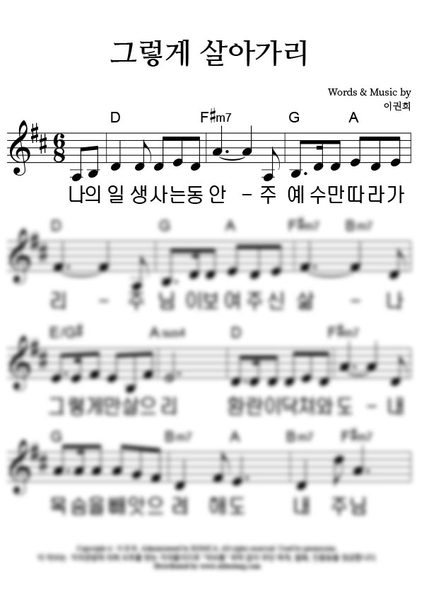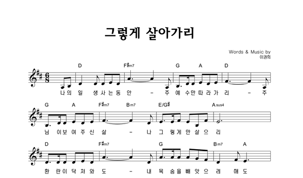 '그렇게 살아가리' 의 악보