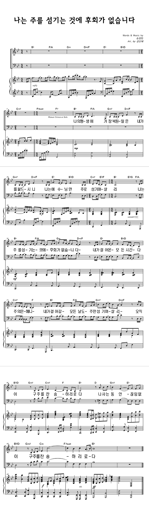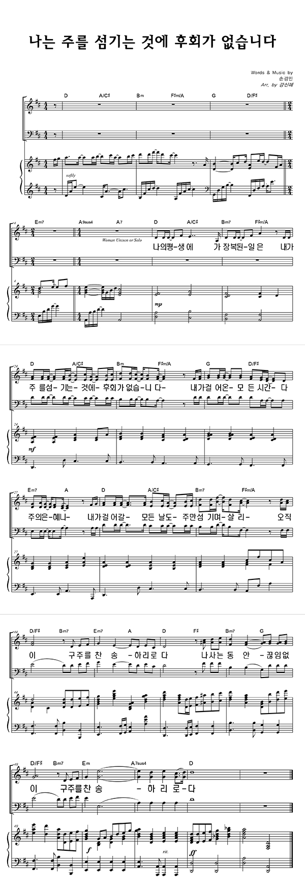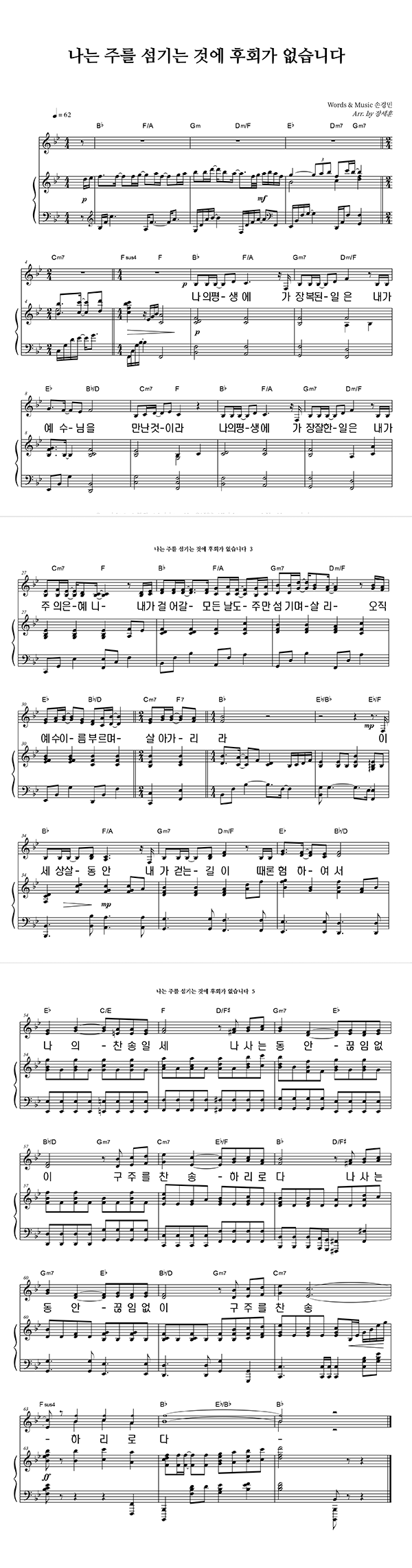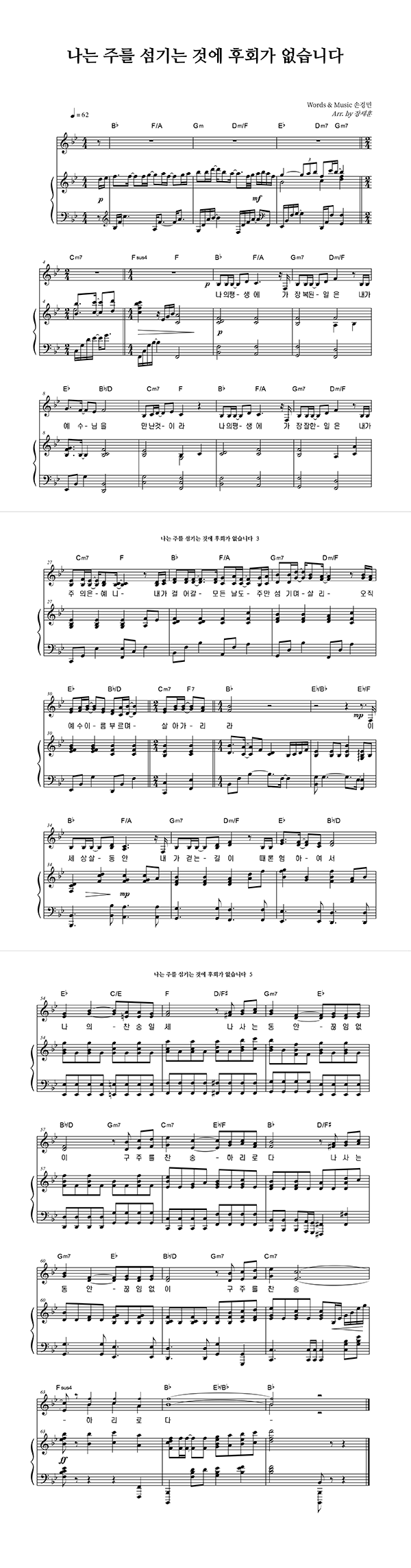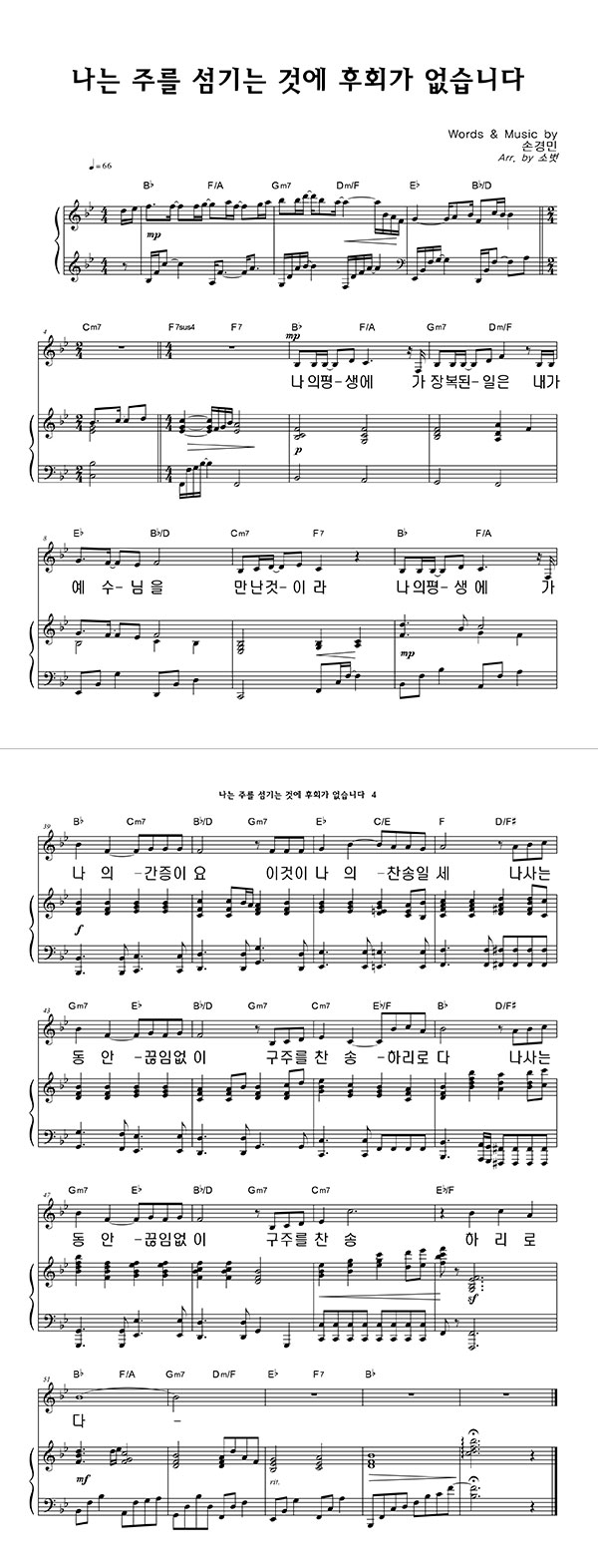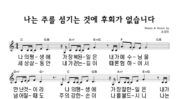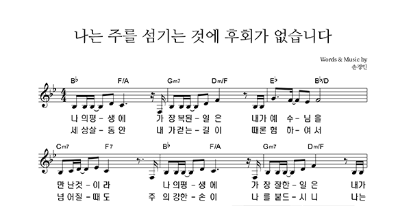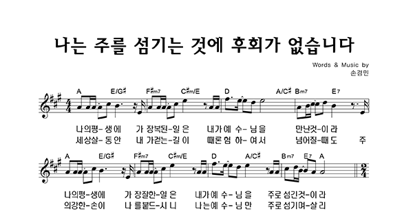 '나는 주를 섬기는 것에 후회가 없습니다' (손경민) 멜로디+피아노반주 악보