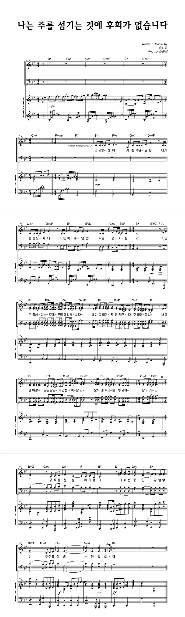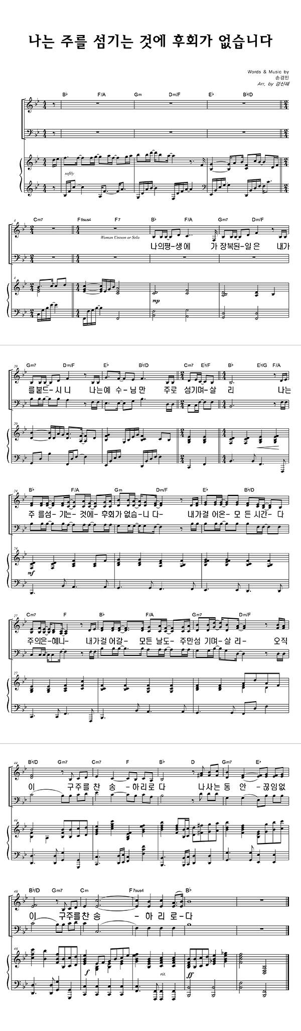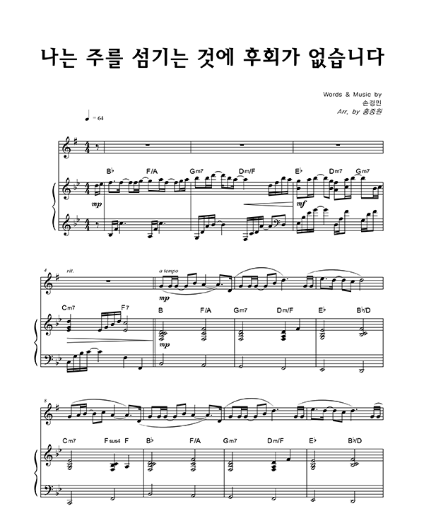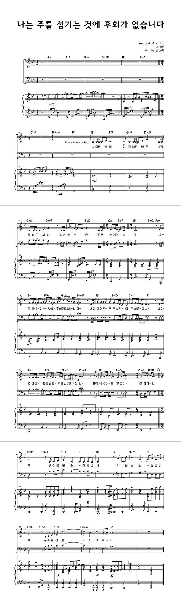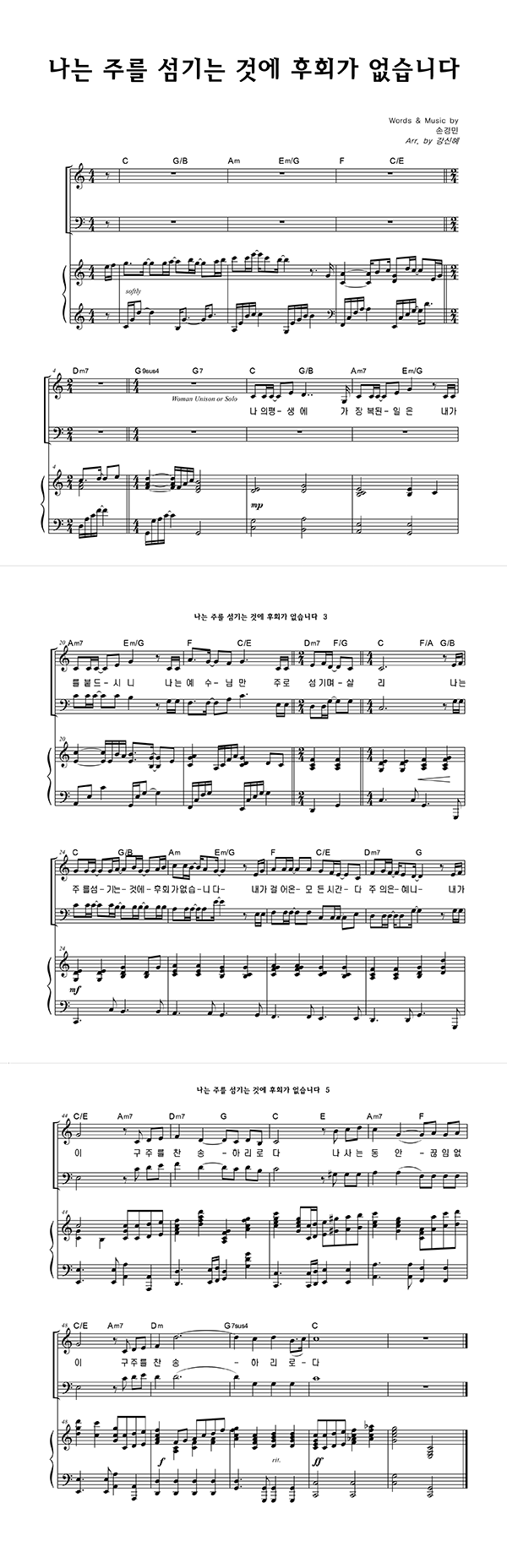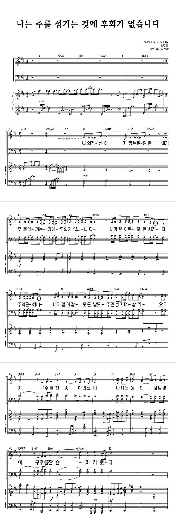'나는 주를 섬기는 것에 후회가 없습니다' (손경민) 멜로디+피아노반주 악보