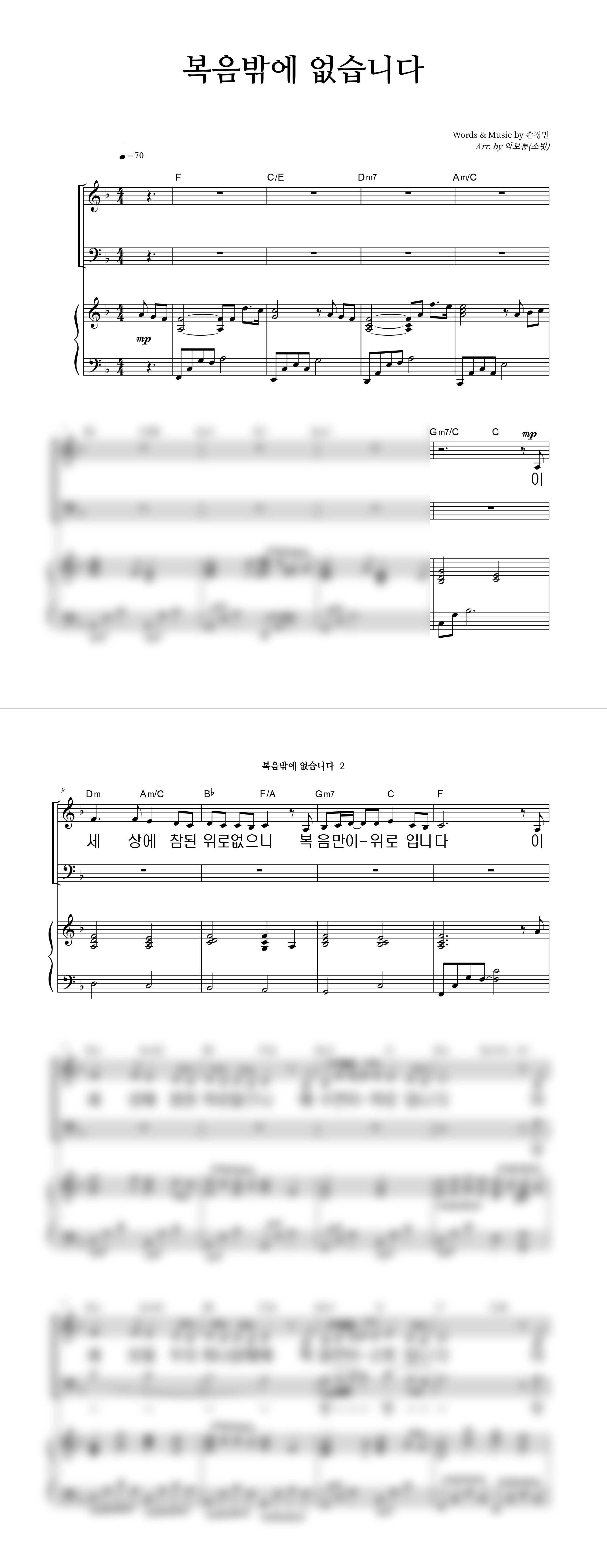 '복음밖에 없습니다' 2/3/4부 합창악보 (손경민 작사작곡, 소벗 편곡)