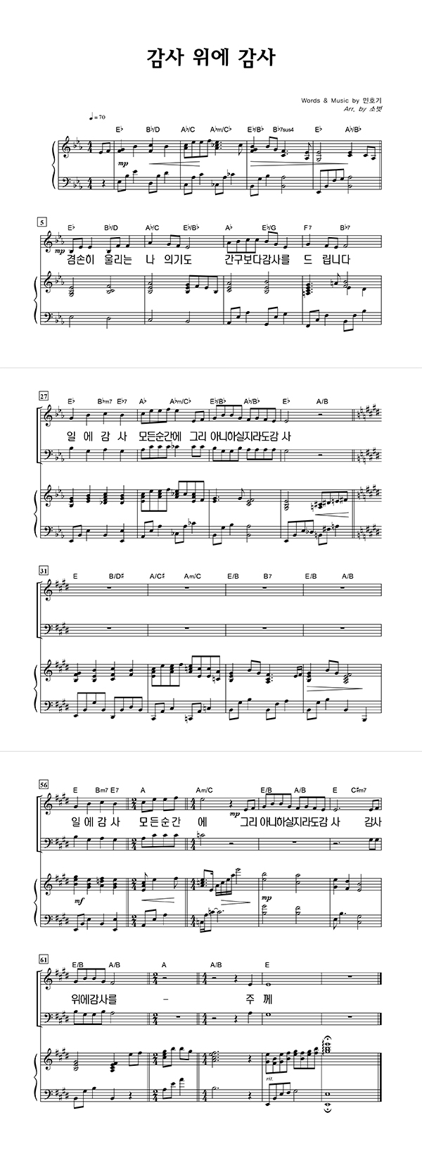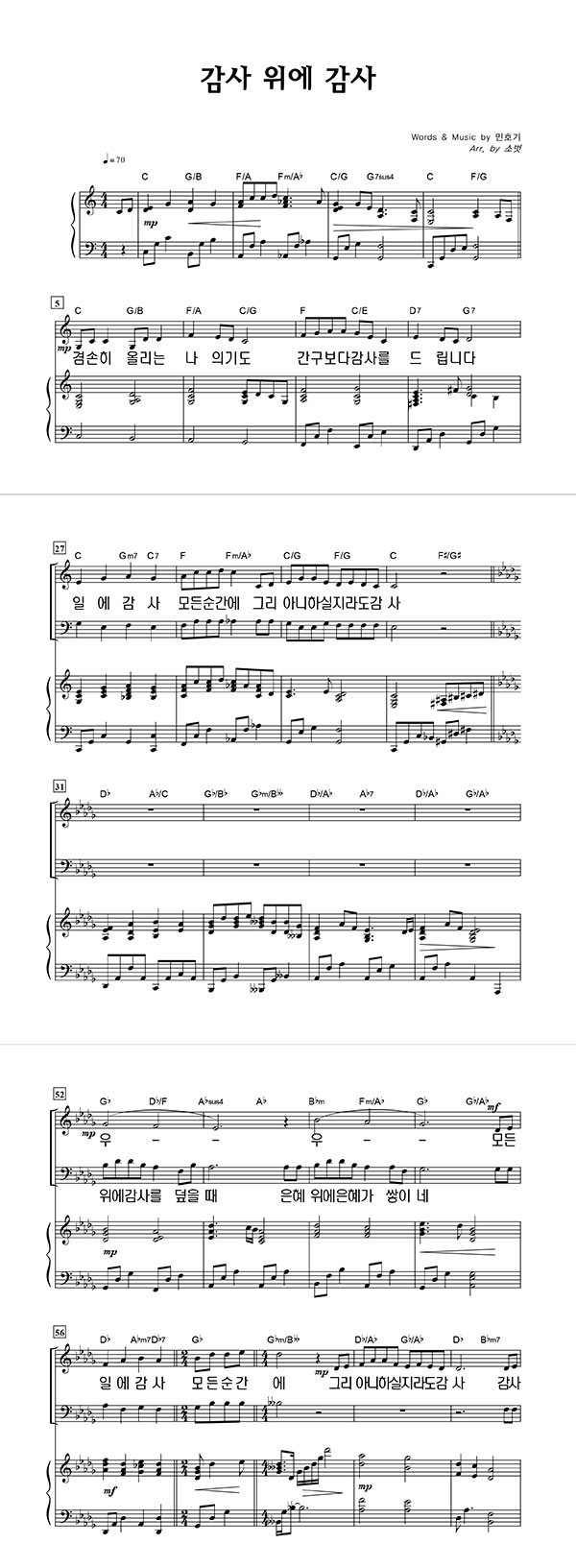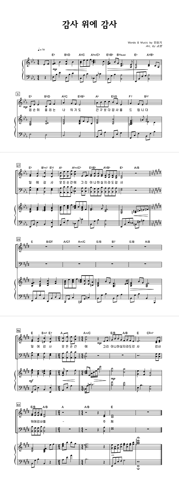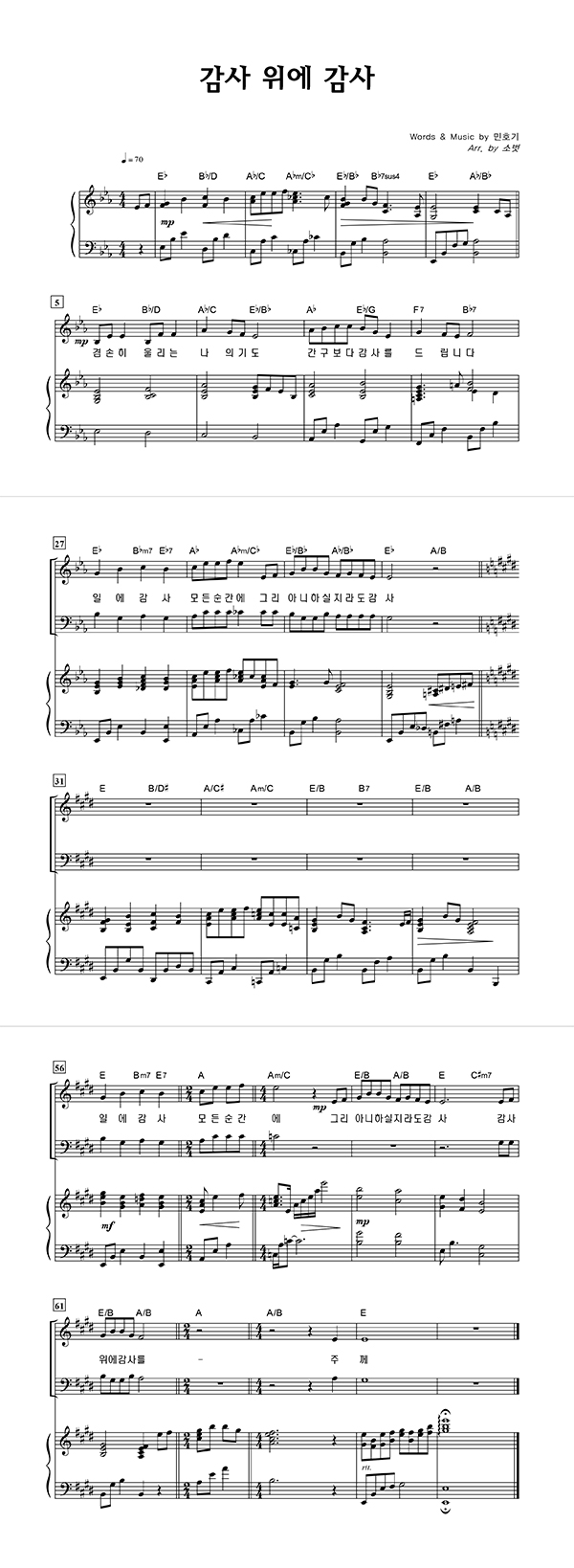 감사 위에 감사 (민호기) Eb key 2/3/4부 합창 악보 | 소벗 편곡
