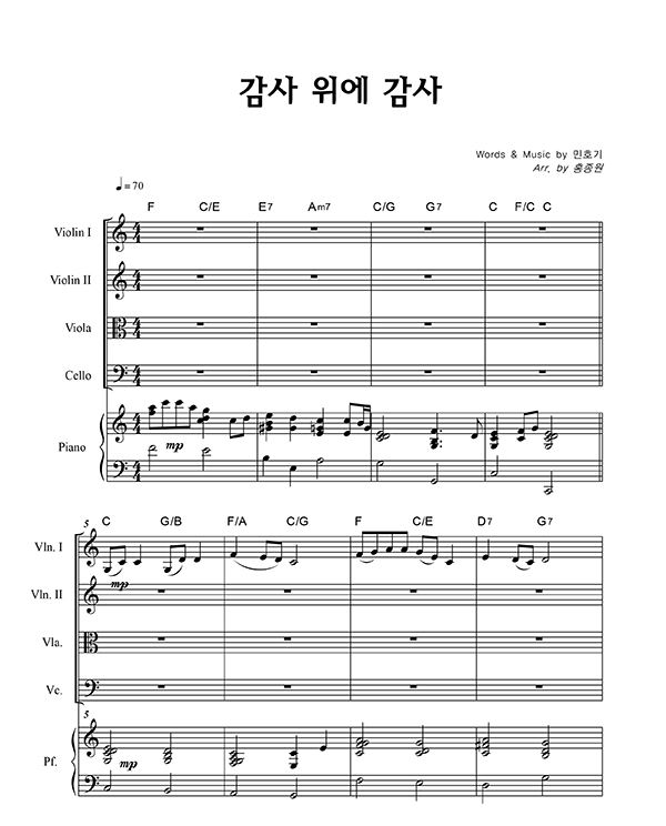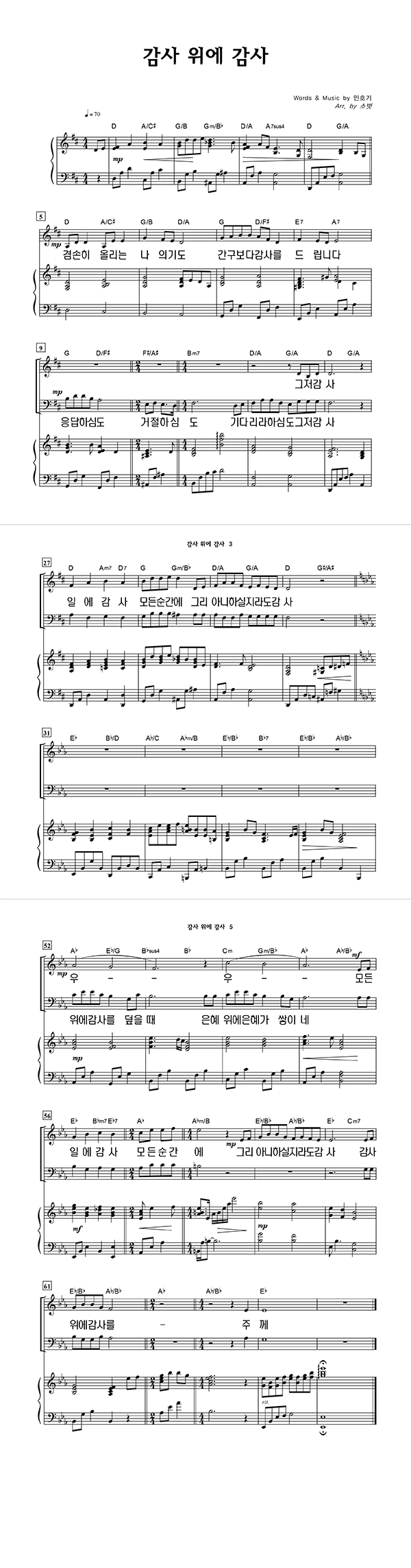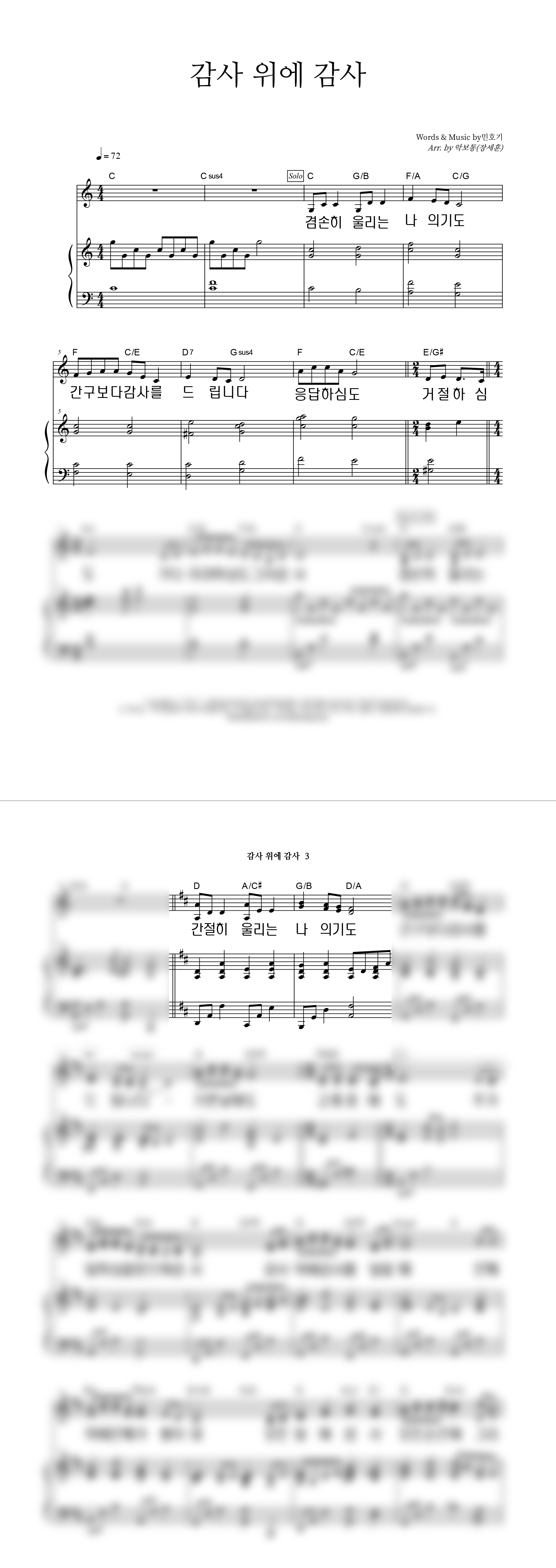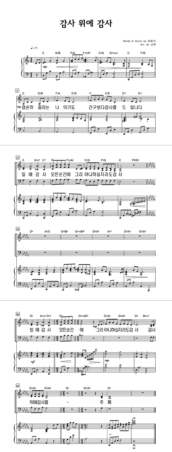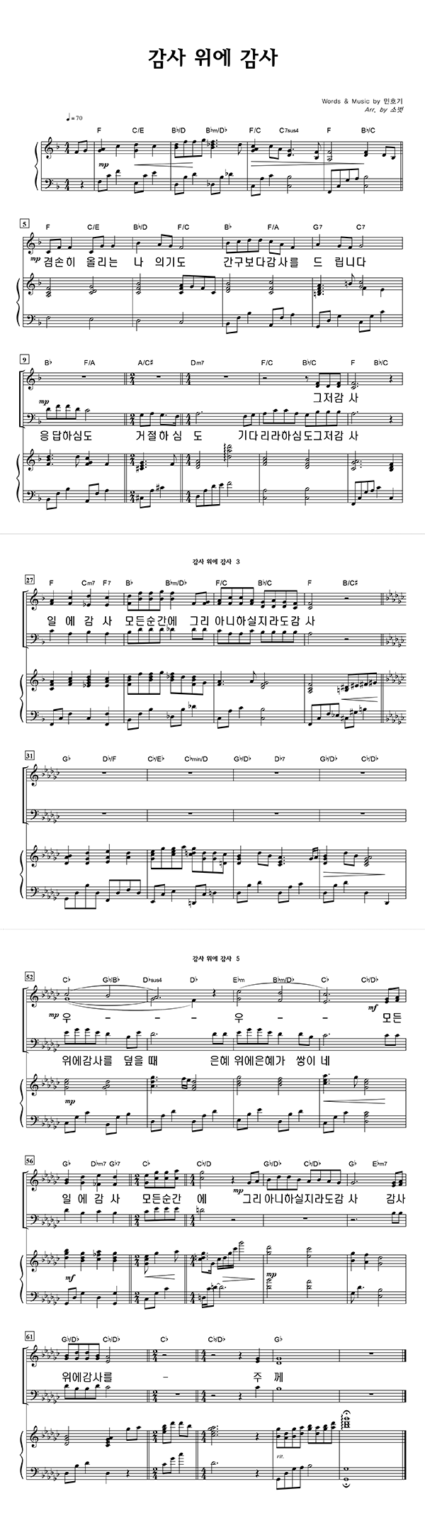 감사 위에 감사 (민호기) Eb key 2/3/4부 합창 악보 | 소벗 편곡