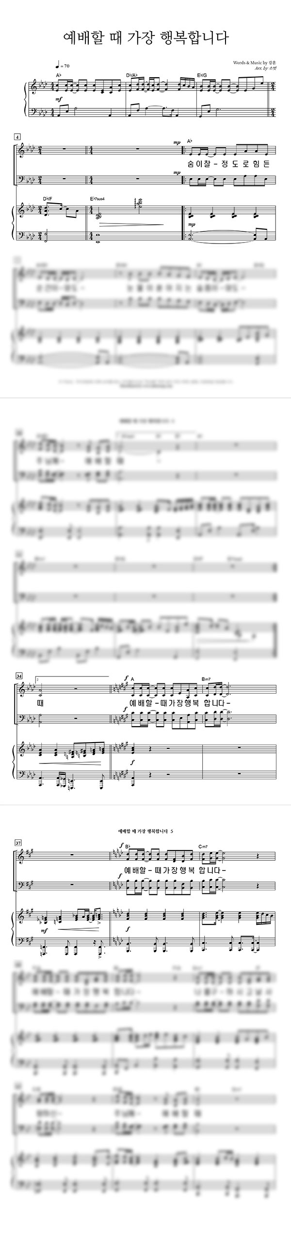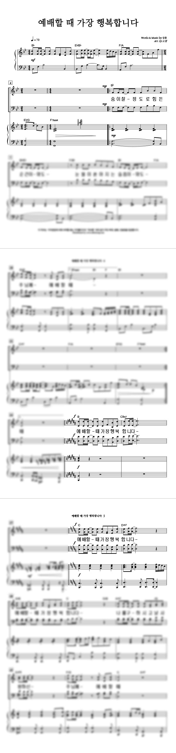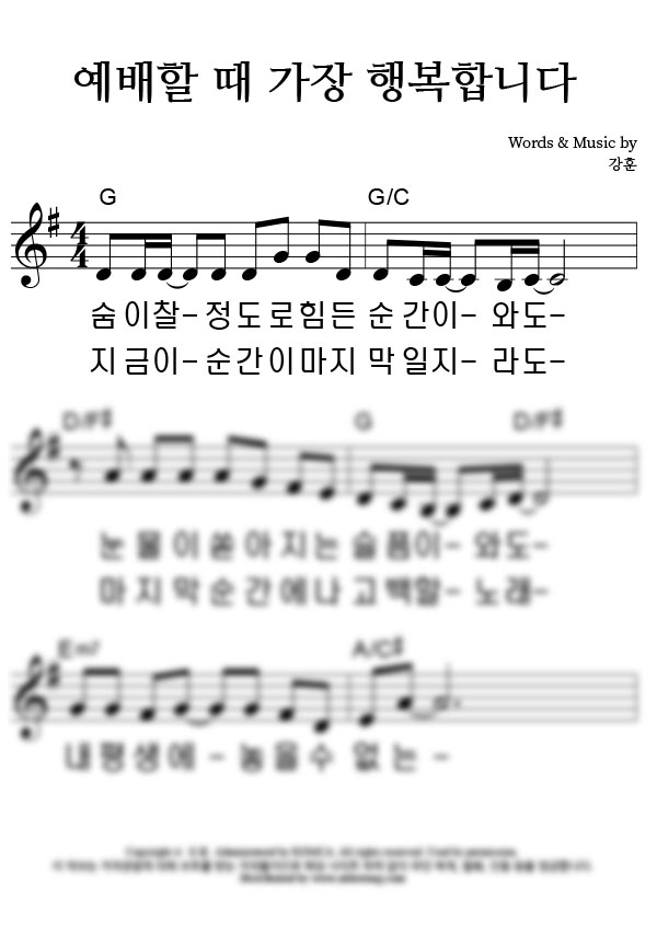 '예배할 때 가장 행복합니다' 의 악보