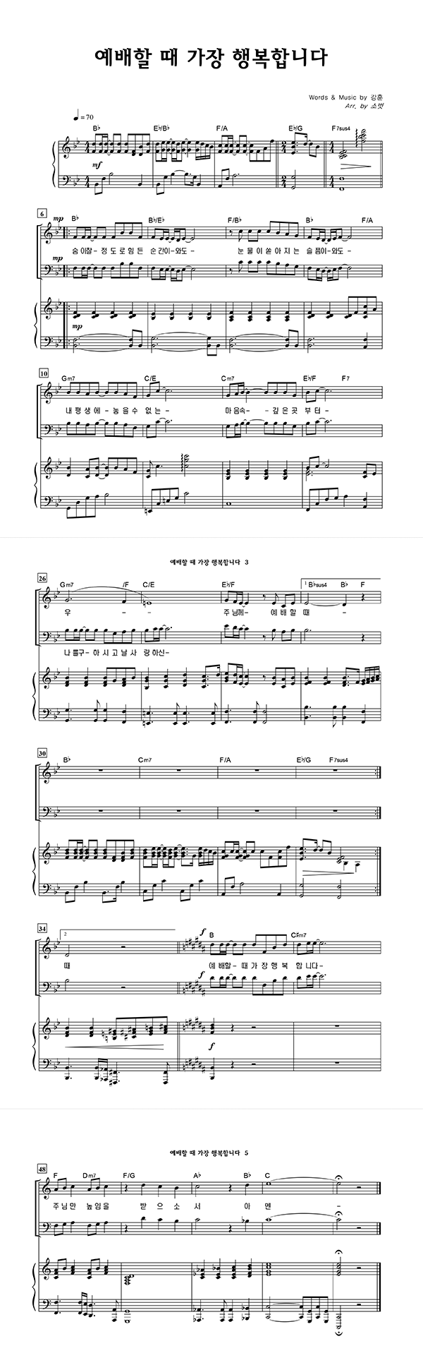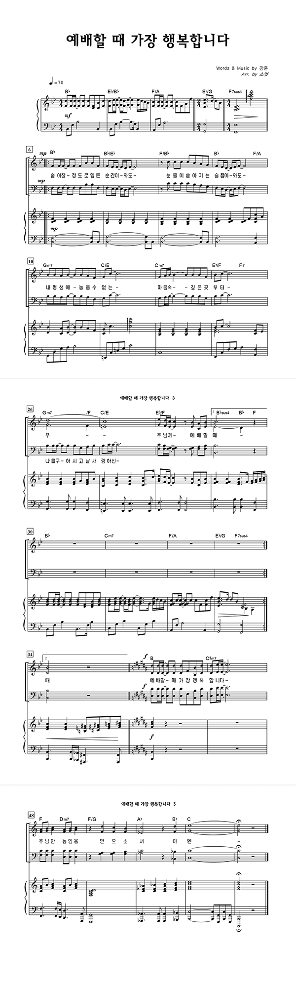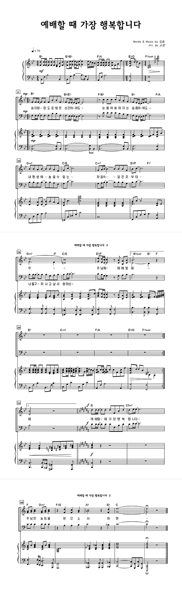 '예배할 때 가장 행복합니다' 의 악보