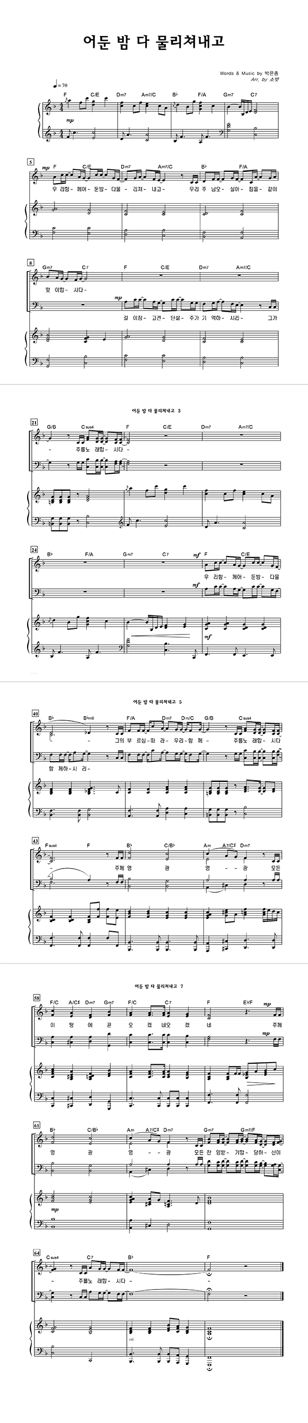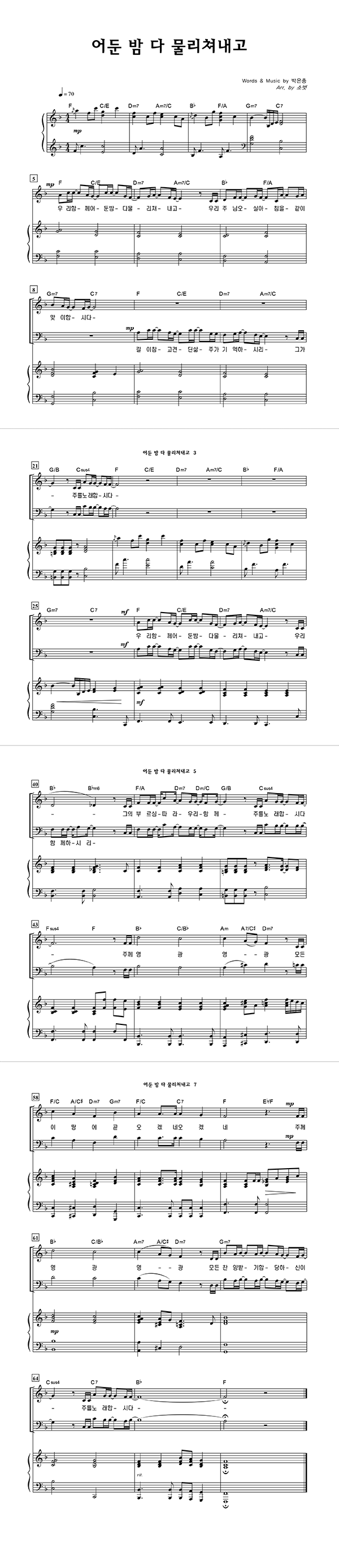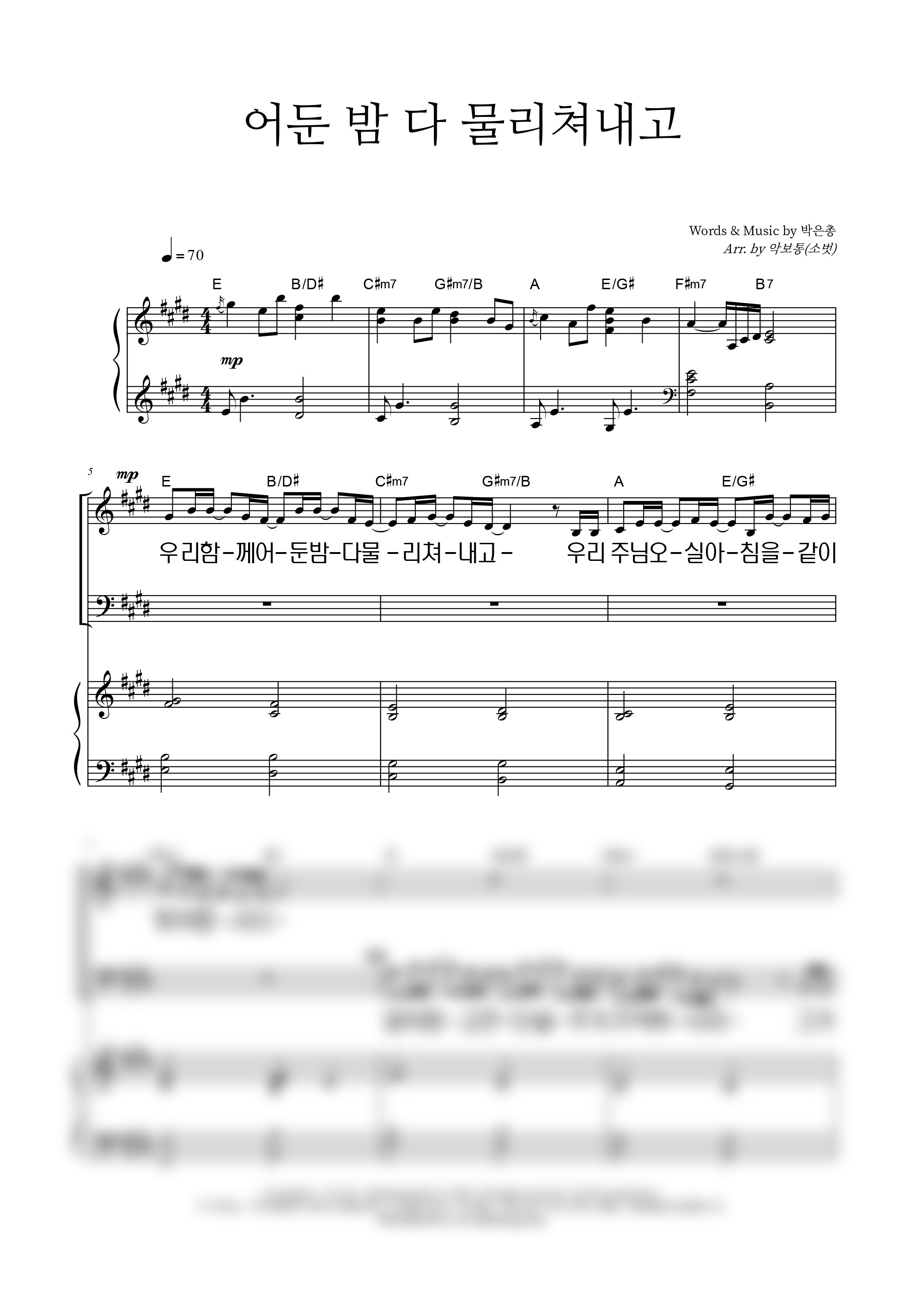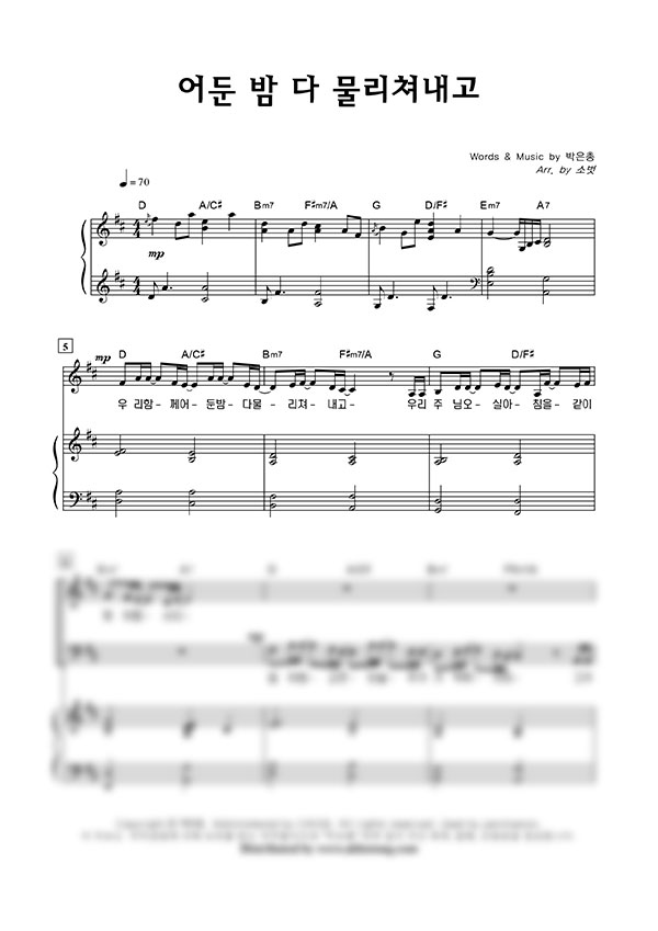 '어둔 밤 다 물리쳐내고' 2/3/4부 합창 악보 arr. by 소벗