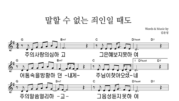 '말할 수 없는 죄인일때도 (Feat. 민호기)' 의 악보