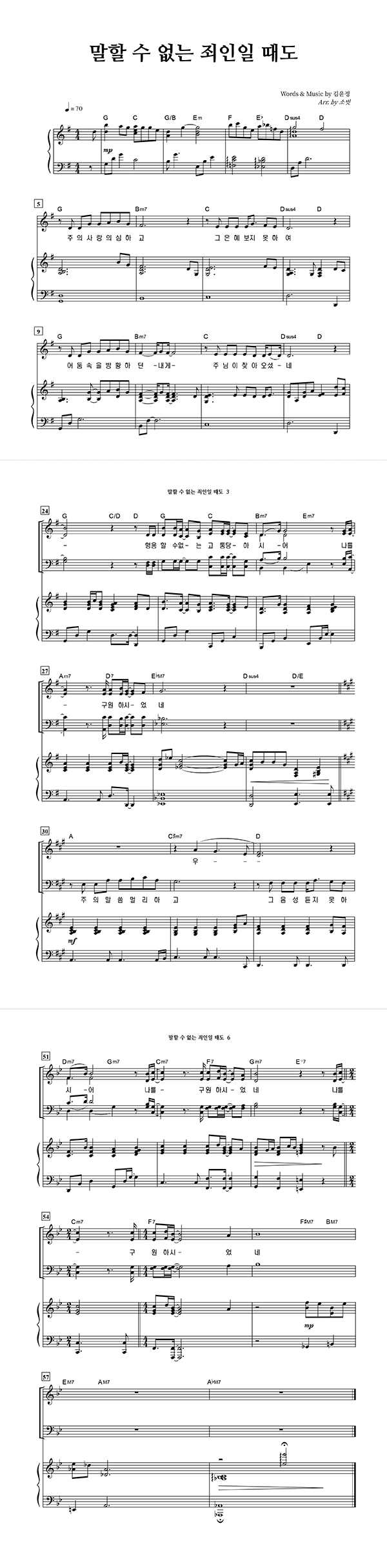 '말할 수 없는 죄인일 때도' 2/3/4부 합창악보 arr. by 소벗