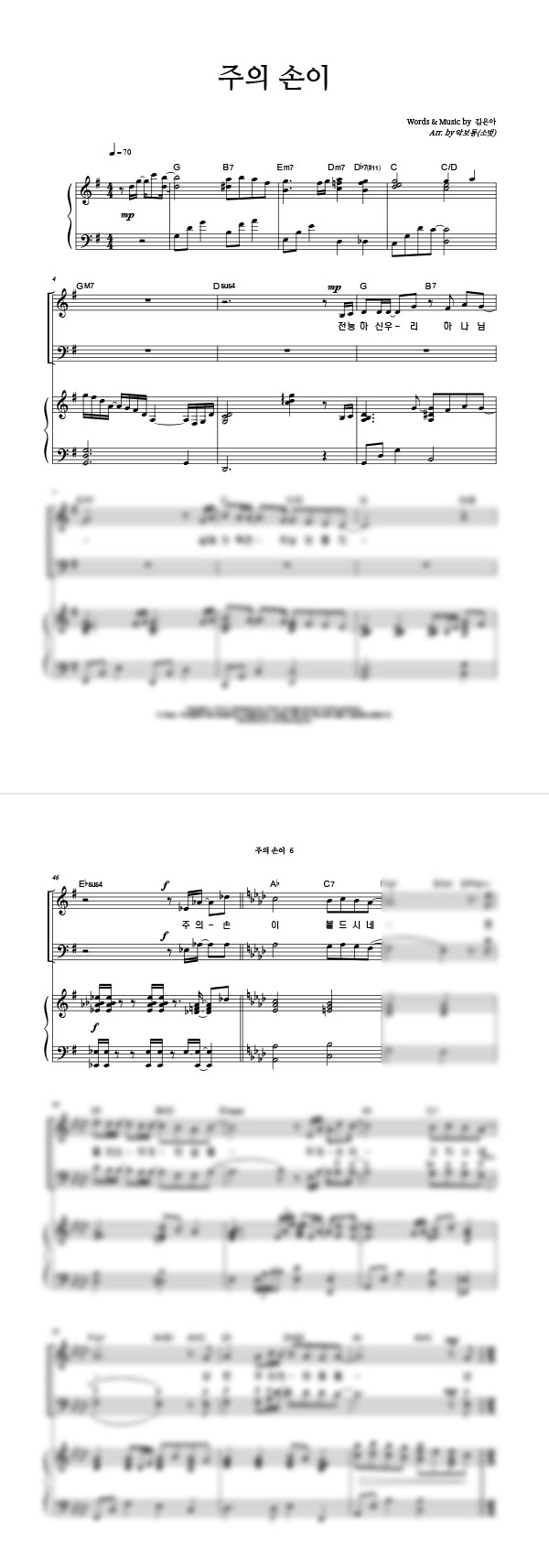 '주의 손이' 2/3/4부 합창 악보 arr. by 소벗