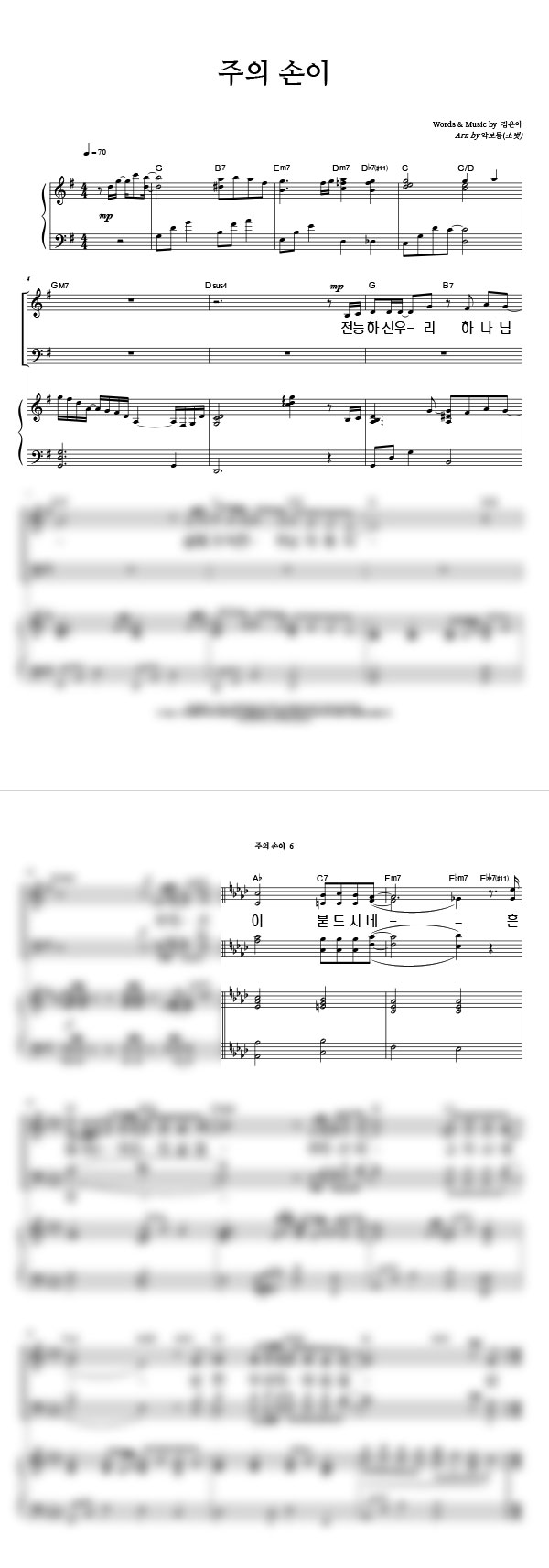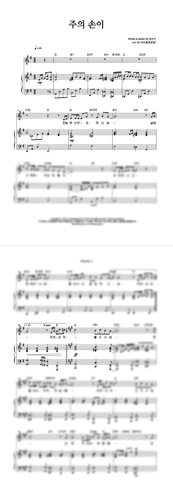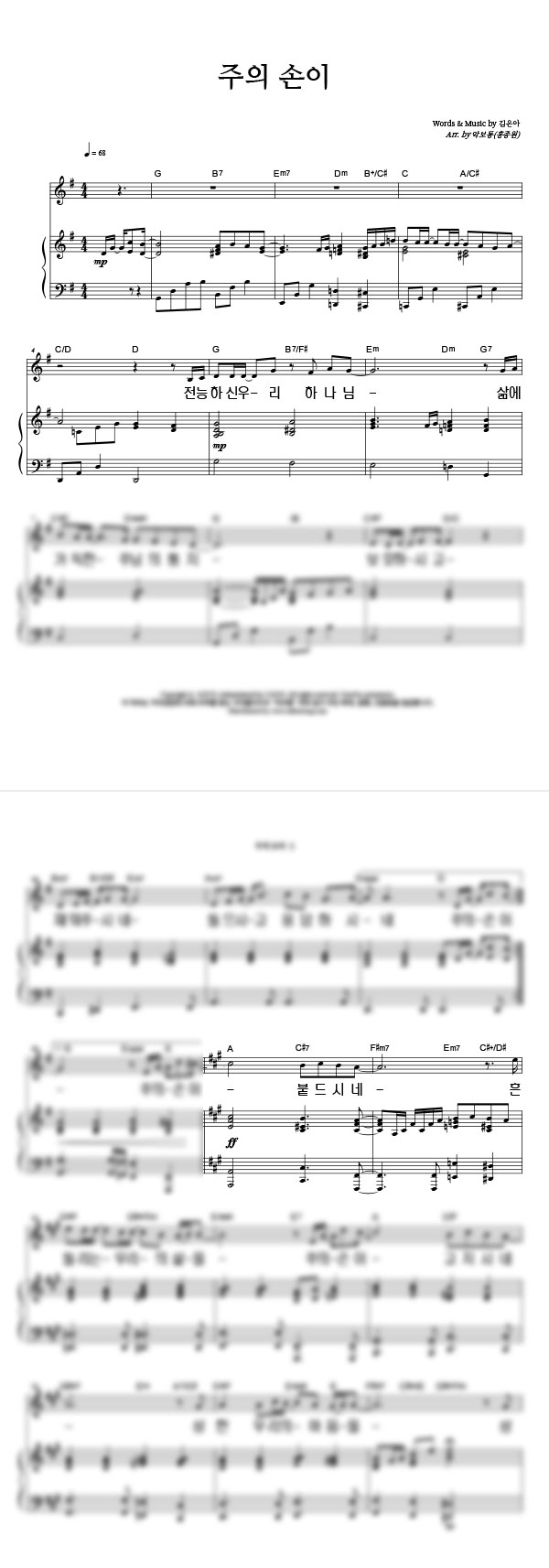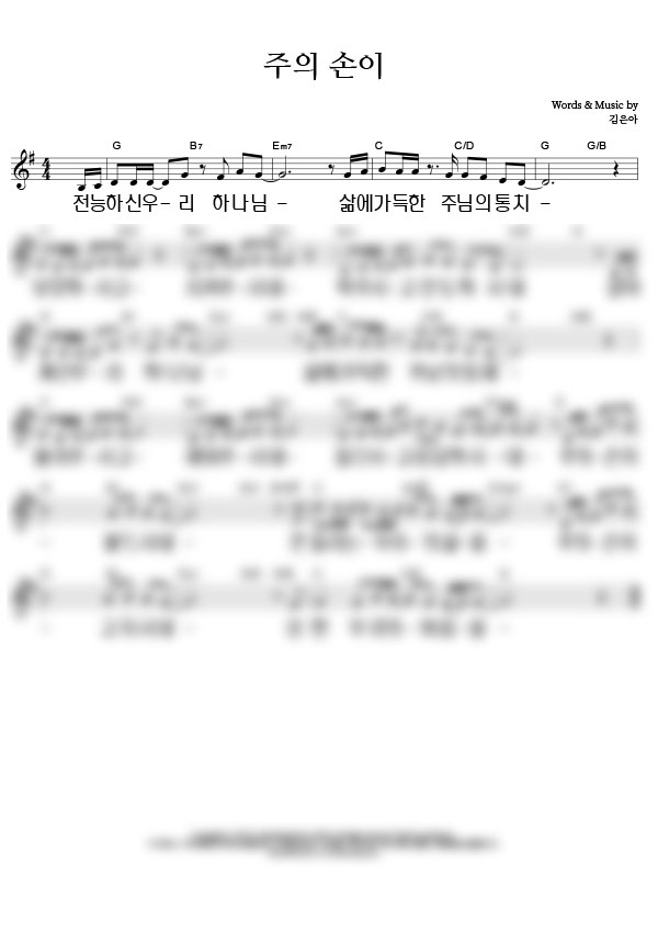 '주의 손이' 의 악보