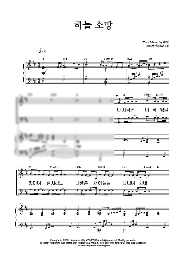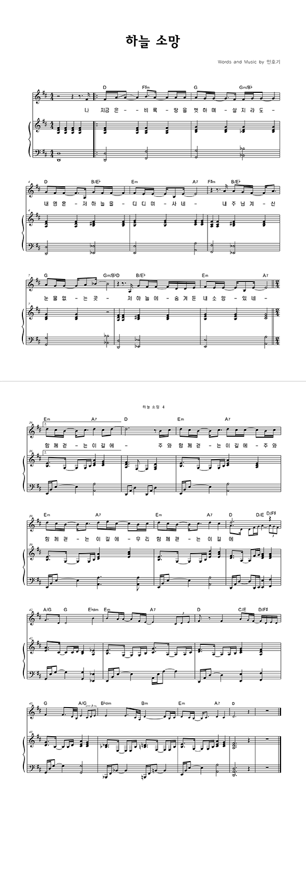 '하늘 소망' 멜로디+피아노 악보 (arr. by 소벗)