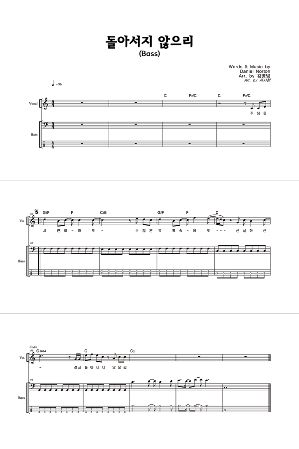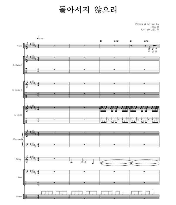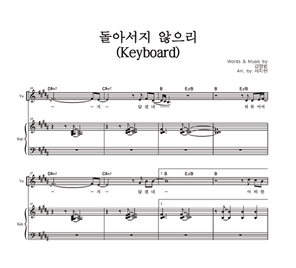 '돌아서지 않으리' 의 악보