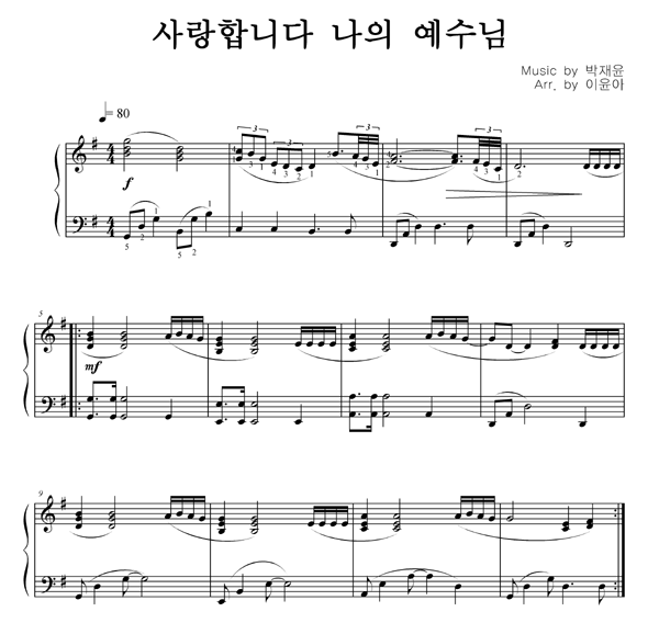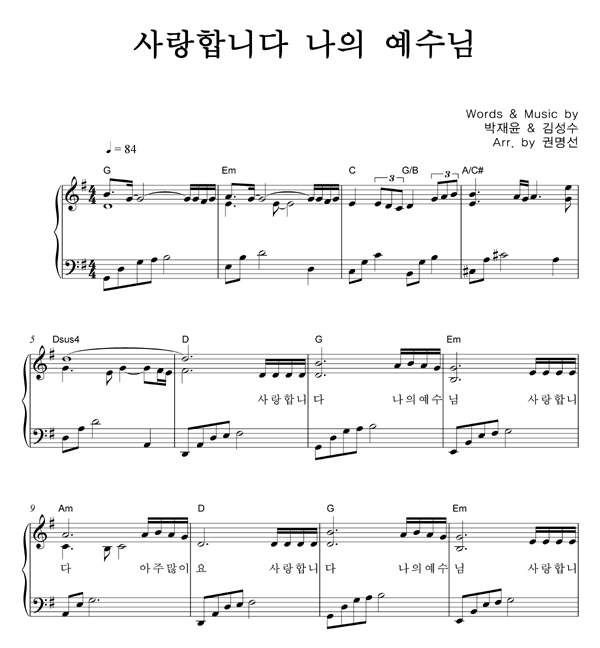 '사랑합니다 나의 예수님' 의 악보