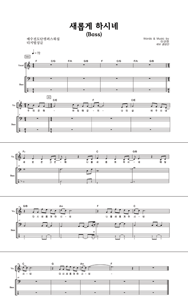 '새롭게 하시네' 의 악보