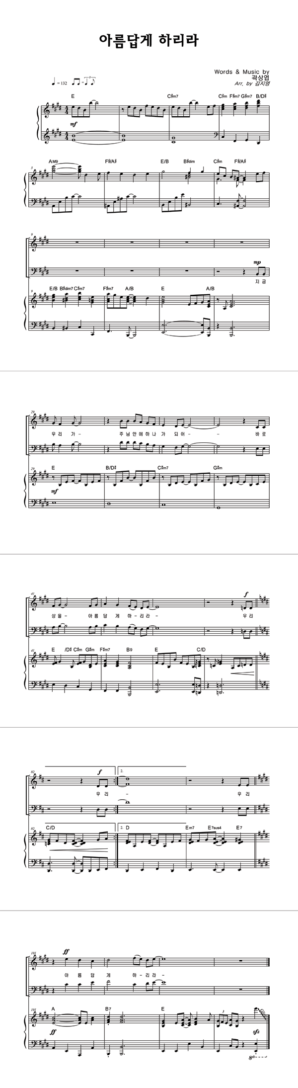 '아름답게 하리라' 의 악보